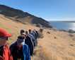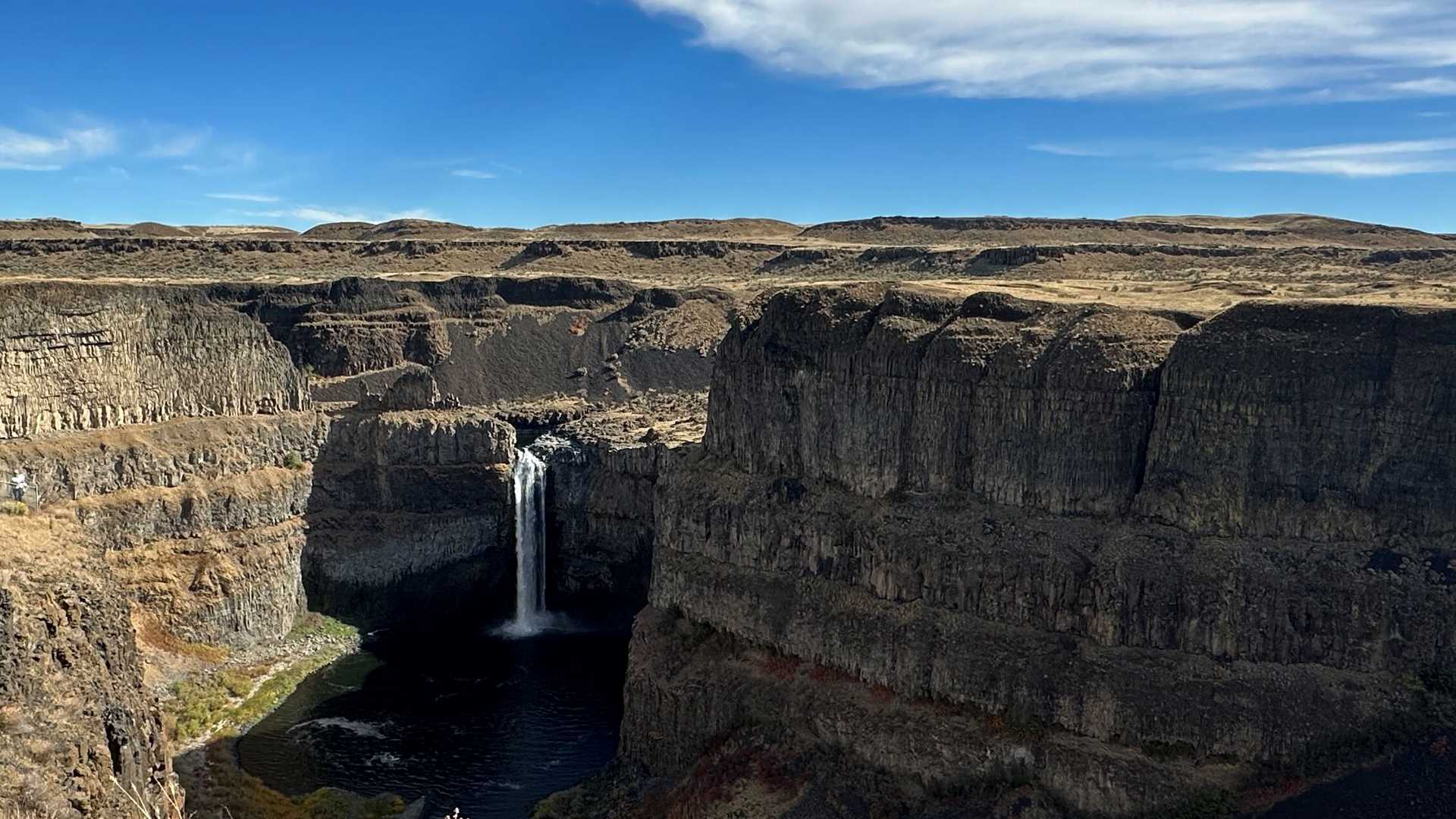 In the growing light of morning, National Geographic Quest makes her way downstream toward our destination at the confluence of the Snake and Palouse Rivers. Dark cliffs of layered basalt trimmed with the buff-colored grasses of autumn loom on either side of the river. The rounded hills, covered with these grasses, were described by Lewis and Clark as, “Those brown velvet hills,” and that describes them beautifully. On this sunny and beautiful fall day, we anchor on the Snake River, take Zodiacs to shore, and set out on our motor coaches to Palouse Falls. This cataract falls 198 feet into a green plunge pool below. We have time to investigate the local plants and do some birdwatching, and we take many photos of the falls and the gorgeous Palouse River Canyon.