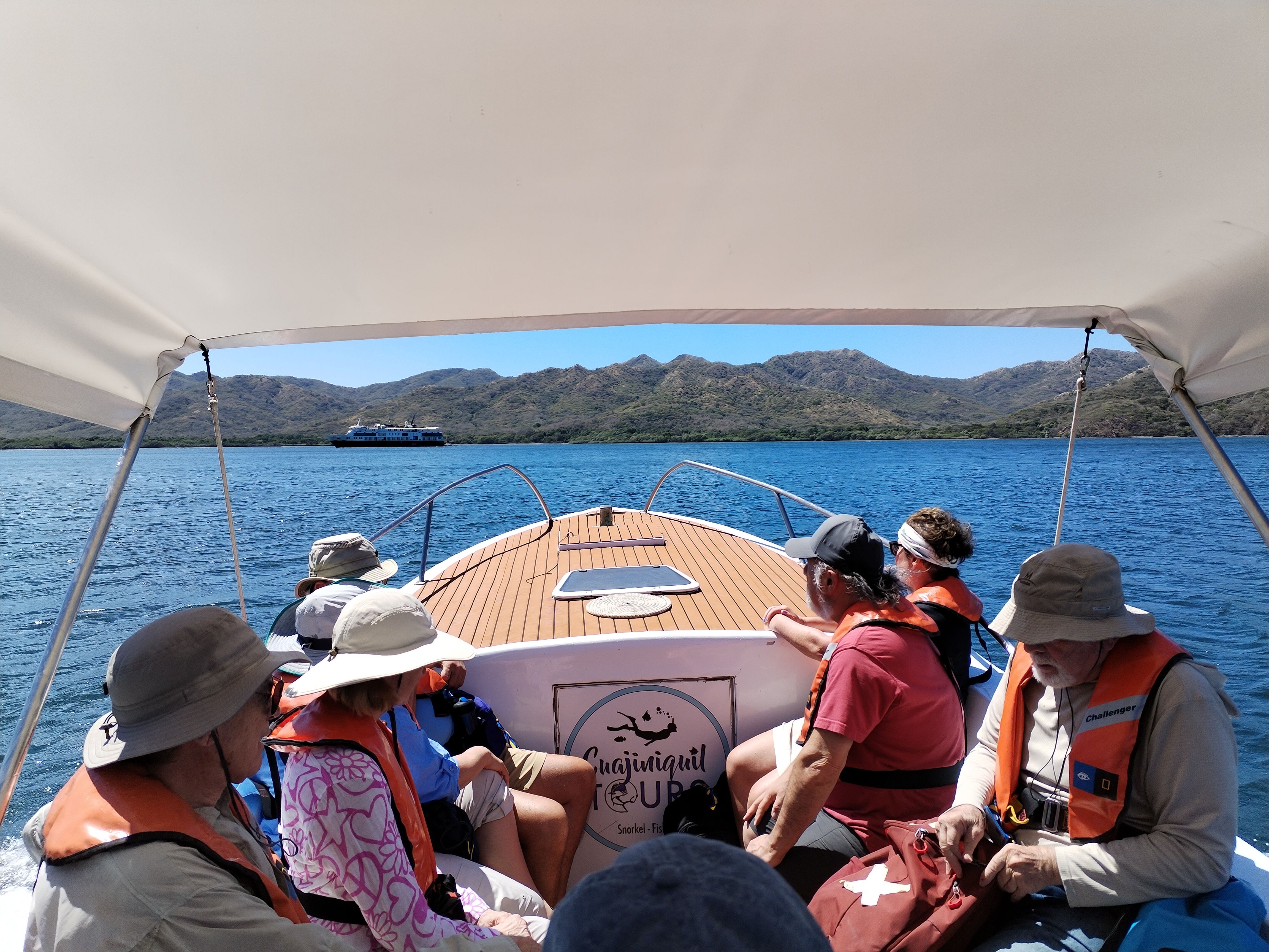 Today was the first day of our expedition and Costa Rica lived up to its reputation — it was a great day. In the morning we stopped at a beach that was not only gorgeous but also completely pristine; there was nobody there, just the sand and the forest. This beach is named Playa Celestia because of the beautiful turquoise color of the water. At Playa Celestia some of us just enjoyed the beach, while others did a hike to look for wildlife. The walk was very pleasant and some guests even spotted monkeys.