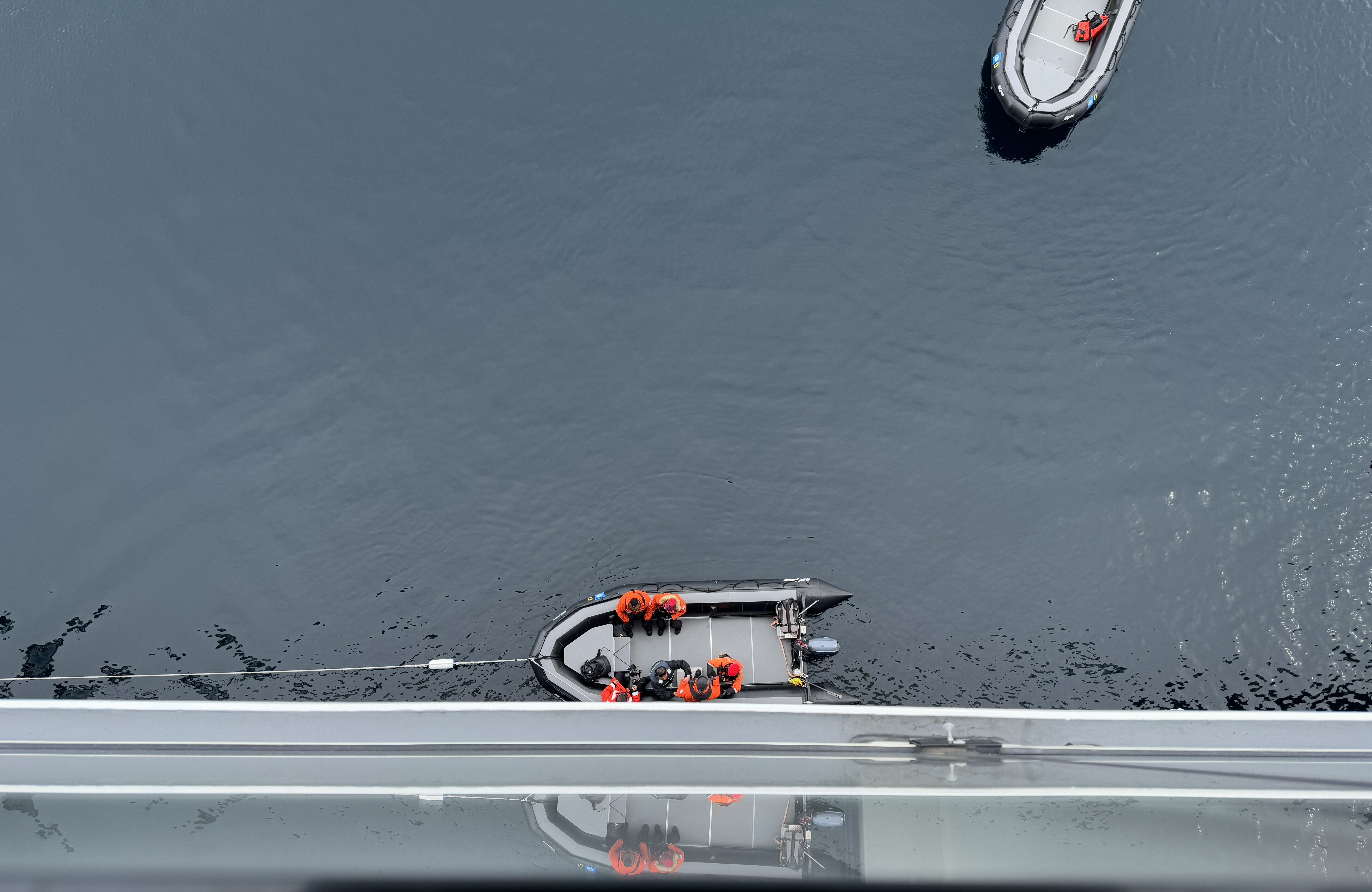 Over lunch, as we repositioned National Geographic Resolution to head towards our afternoon’s activities, a HUGE group of killer whales was suddenly spotted from the bridge. We basked in the beauty of at least 20 stunning orcas as they cruised all around us, including several big males and at least one young calf!