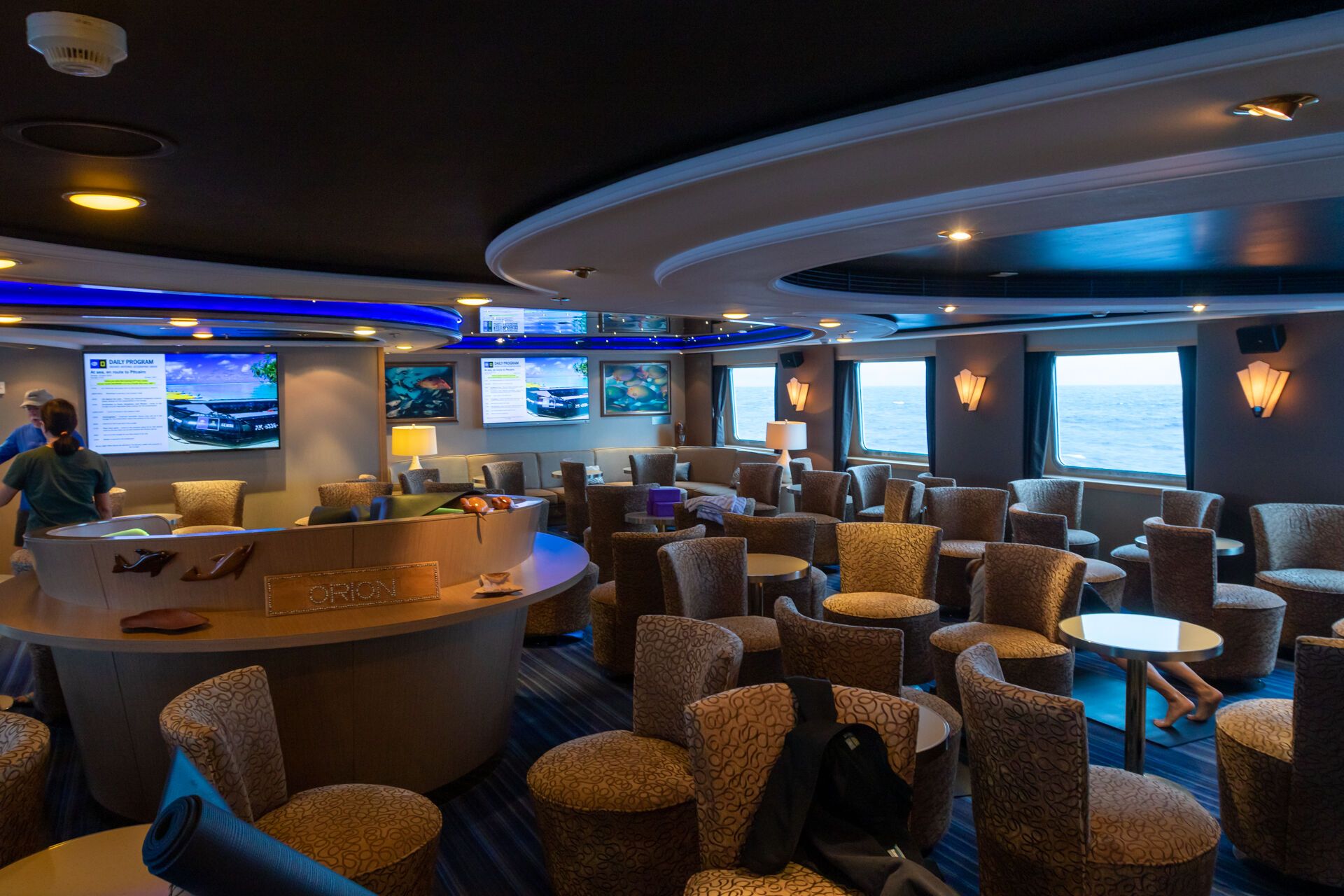 After lunch, we separated again for afternoon activities. One group went for a long, five-mile hike across the moors and natural landscapes of the strangely-named Lizard. Another group walked around the village. Throughout the afternoon, guests headed back to the ship to enjoy the amenities. The sun came out and those on the ship admired the sunlit Penzance coast and the offshore island abbey of St. Michael’s Mount.
