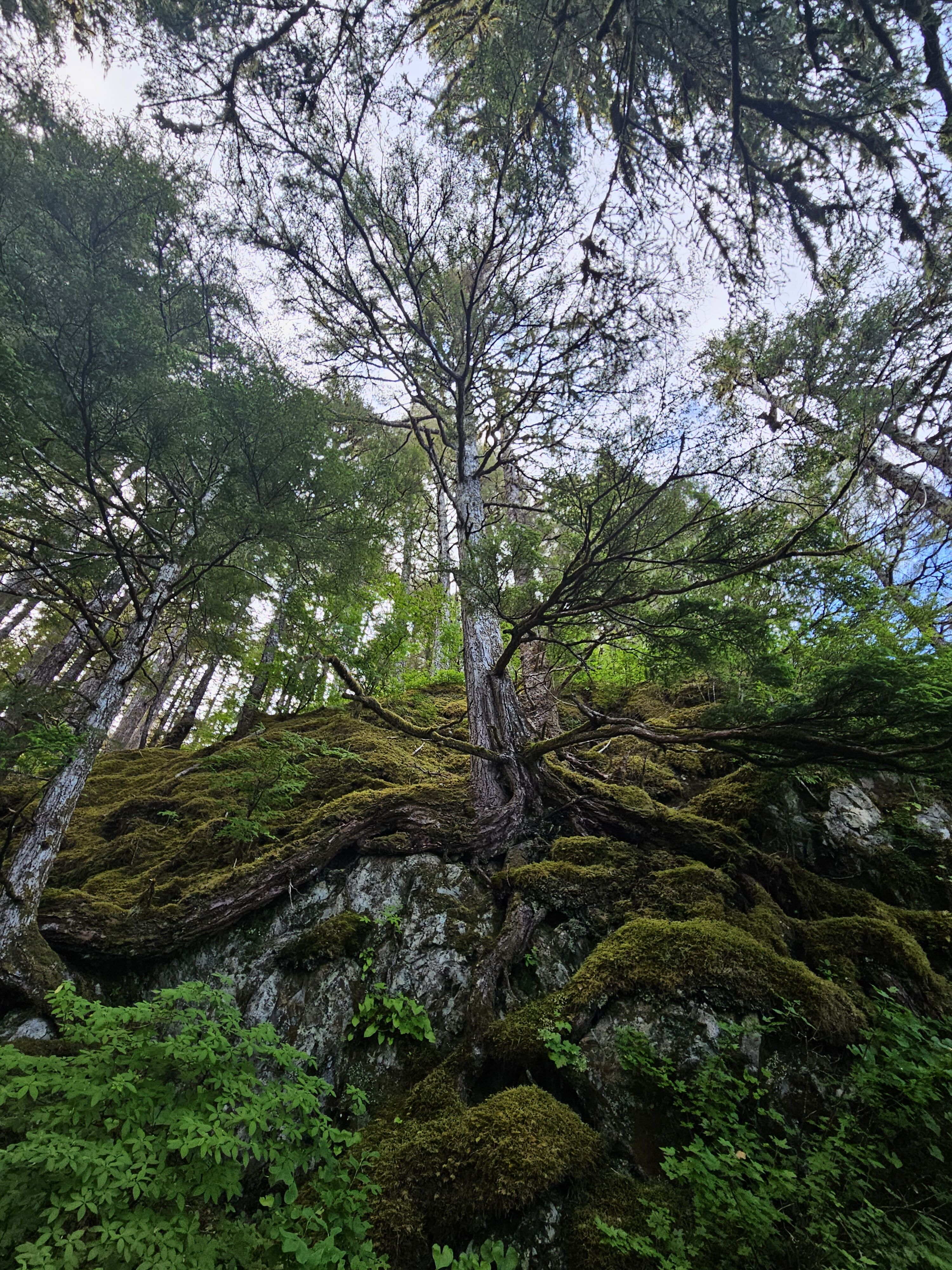 We voyaged through Peril Strait throughout the midmorning as we learned about basic ship and expedition safety from our expedition leader. In the afternoon, we dropped anchor in Hanus Bay on the northeast side of Baranof Island. From there, we hiked the Lake Eva trail, kayaked, used the stand-up paddleboards, and generally explored the area. Hikers spent the afternoon on a well-maintained trail in the Tongass National Forest, meandering through classic Southeast Alaska Sitka spruce and western hemlock. We passed a stream hosting the early adult salmon that have returned to spawn. We also picked and ate ripe blueberries and salmonberries along the way while observing and learning about fungi, moss, lichen, devil’s club, and cow parsnip. Kayakers enjoyed a beautiful shoreline and biodiverse intertidal zone, as well as an exploration of the mouth of the Eva Creek and River at its confluence with the bay.