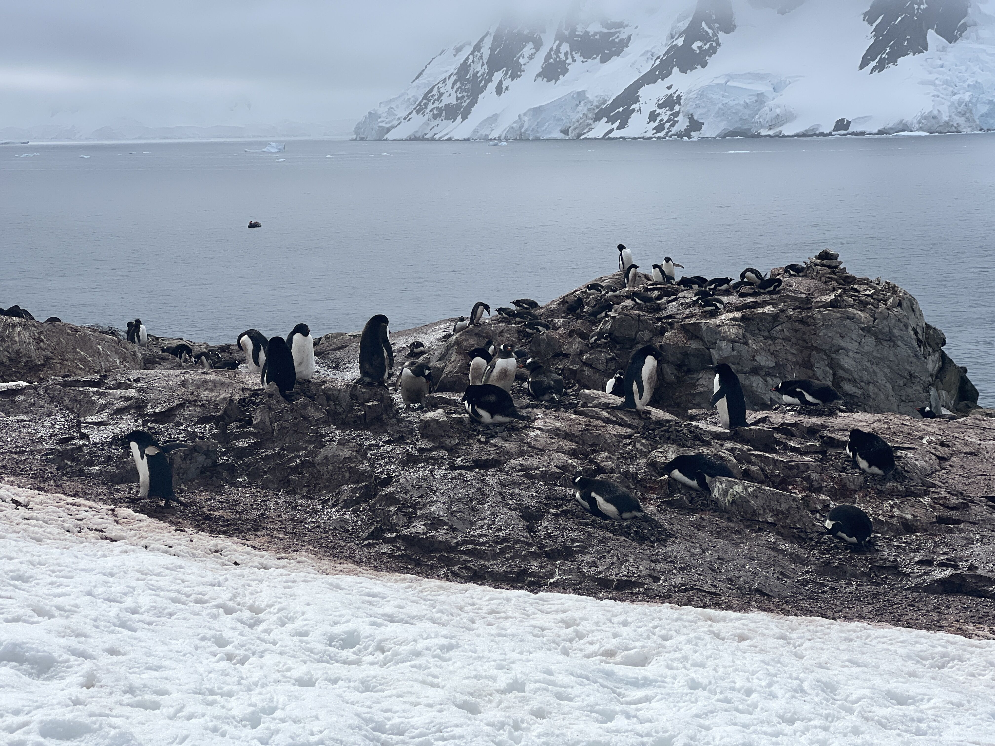 This morning we arrived at Petermann Island, the weather was calm and a little overcast, but the perfect conditions and light for the photographers amongst us. Petermann Island is home to a huge Gentoo penguin colony, and here we witnessed some of the amazing nesting behaviors displayed by these tough little penguins. We are incredibly lucky to have seen so many young chicks, and many penguins still sitting on eggs.