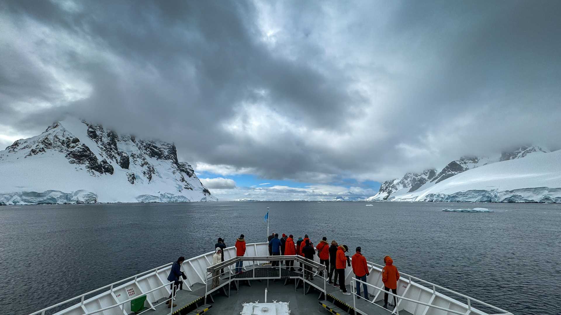 An early wakeup call from the expedition leader was appreciated by the guests who bundled up and headed outside for our transit through the Lemaire Channel. The narrow channel, towered over by snow-capped mountains, is one of the most picturesque places in Antarctica.