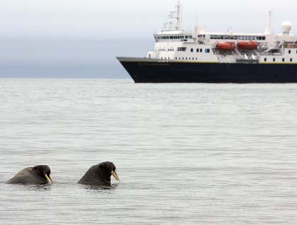 Just before dinner, whale biologist Andy Szabo came aboard to tell us something about the whales we had seen the evening before. Humpbacks are remarkable in size and ponderous elegance, but the more we find out about them, the more remarkable they appear. Andy told us about their wide variety of foraging techniques that require long-term and exact memory, cooperative friendships lasting decades, and tool-use.