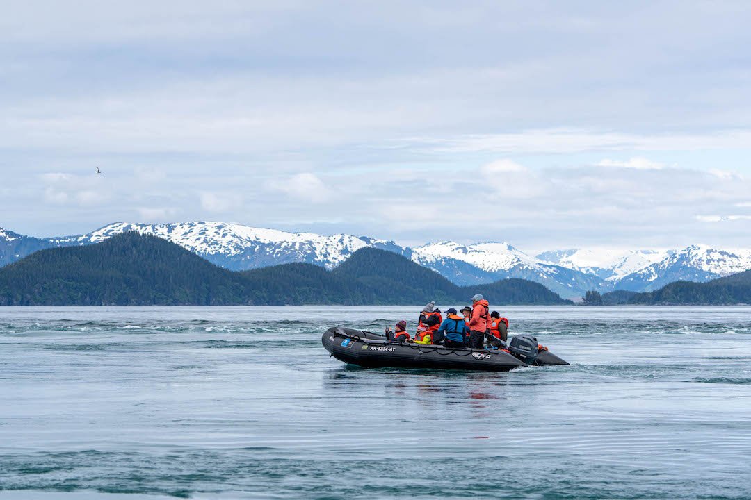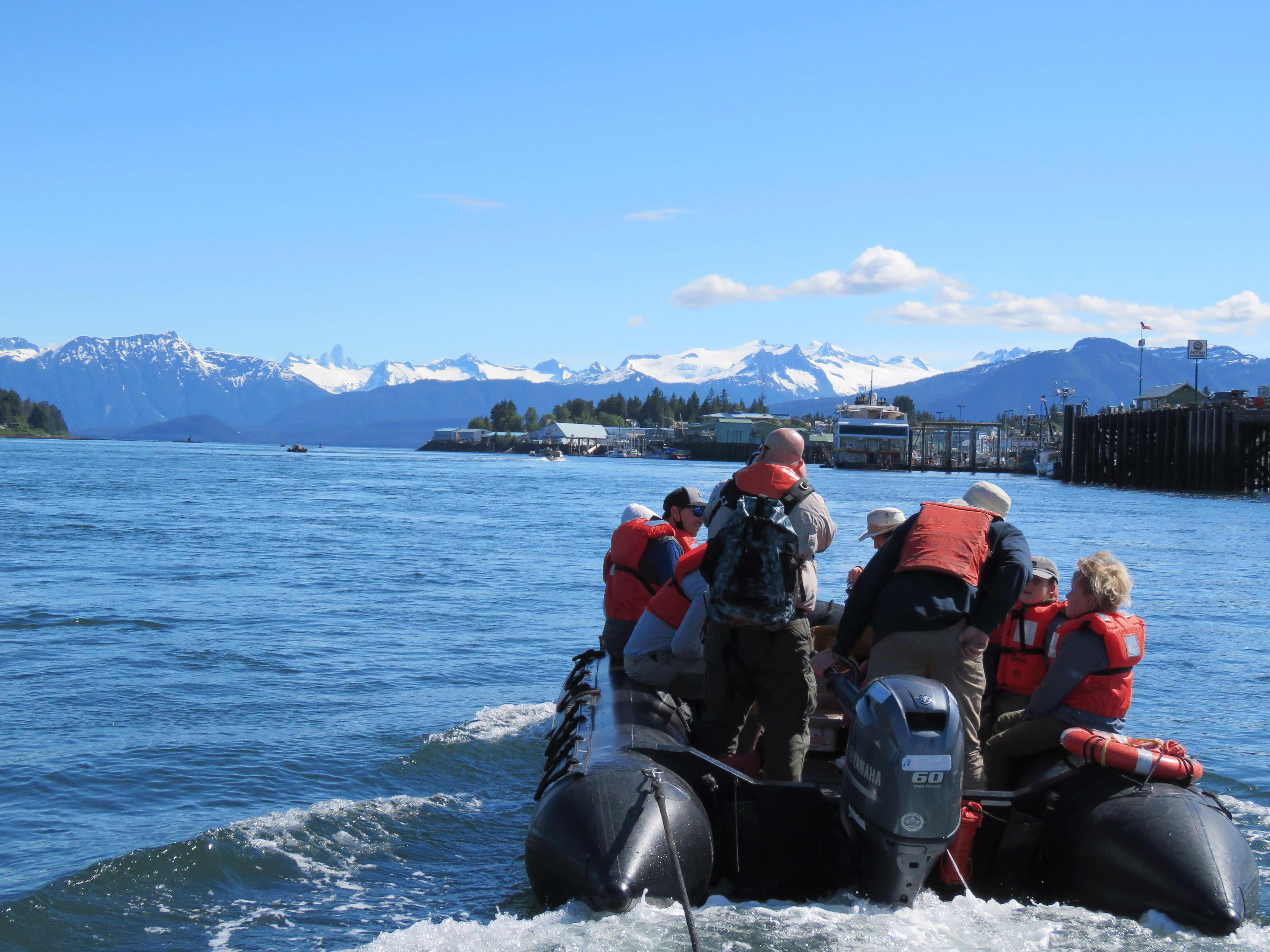 The afternoon brought us to the outwash plain of Baird’s Glacier for some Zodiac and hiking explorations. We landed on the beach of one of the islands formed by the glacier for a short hike along the muddy and rocky shores. The glacier could be seen in the distance, with small pieces of ice in the foreground. The weather graced us with a few drops of rain to wrap up a great day in Southeast Alaska.