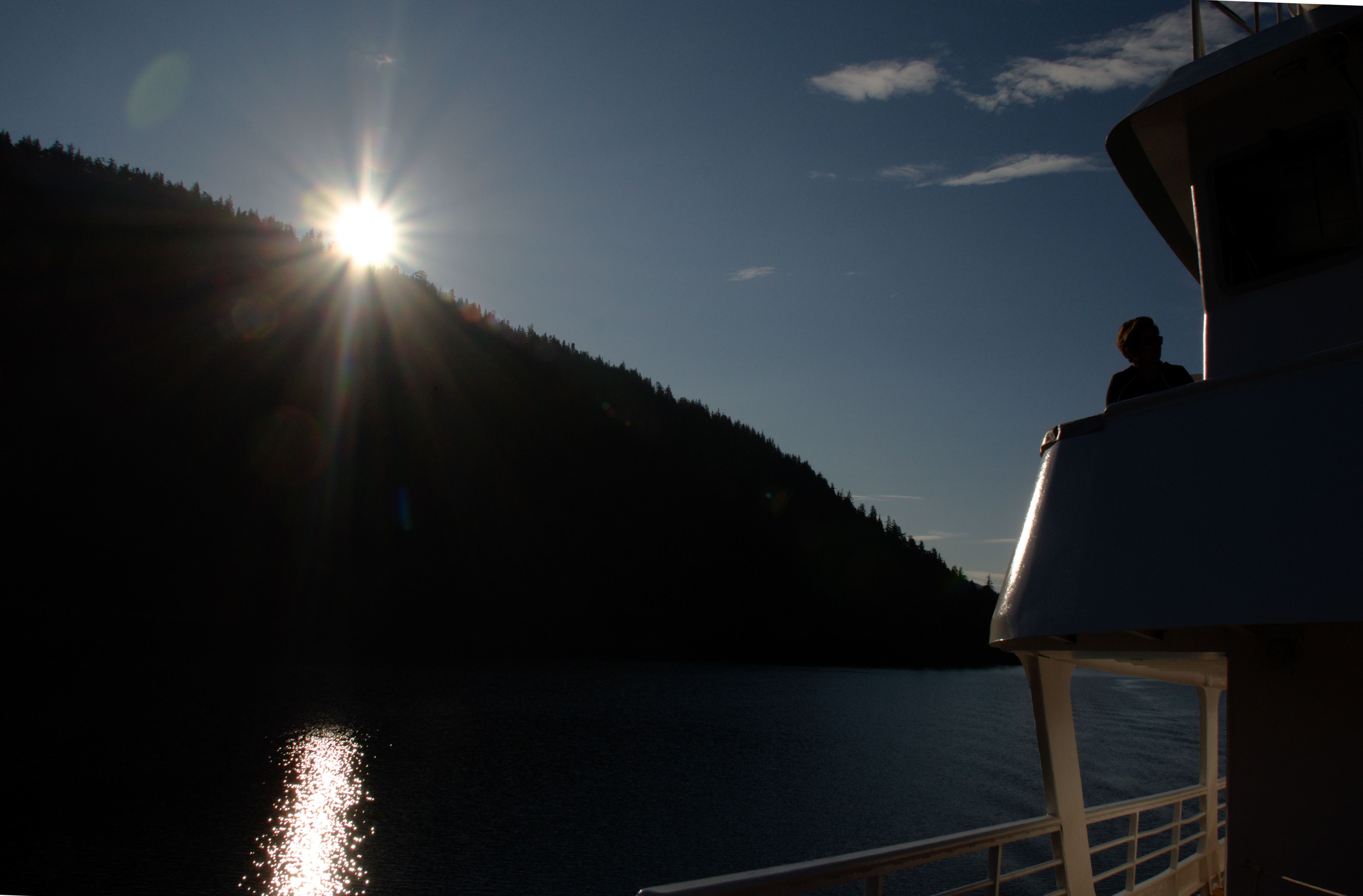 Some guests chose to cruise the docks by Zodiac, learning about the local fishing fleet along the way, while others motored to Kupreanof Island to hike a boardwalk trail to a muskeg bog to view this exotic environment. Bicycles were available for those that wished to explore the local town on Mitkof Island. As we spent the entire day in port, people also had time to relax and take advantage of the pleasant weather to sit quietly, read, and enjoy the views of Devils Thumb across Frederick Sound. For those with good knees and extra energy after lunch, naturalist Shannon Malone led an aerobic hike up Petersburg Mountain. Time limits kept the group from reaching the summit, but none felt shortchanged by the experience.