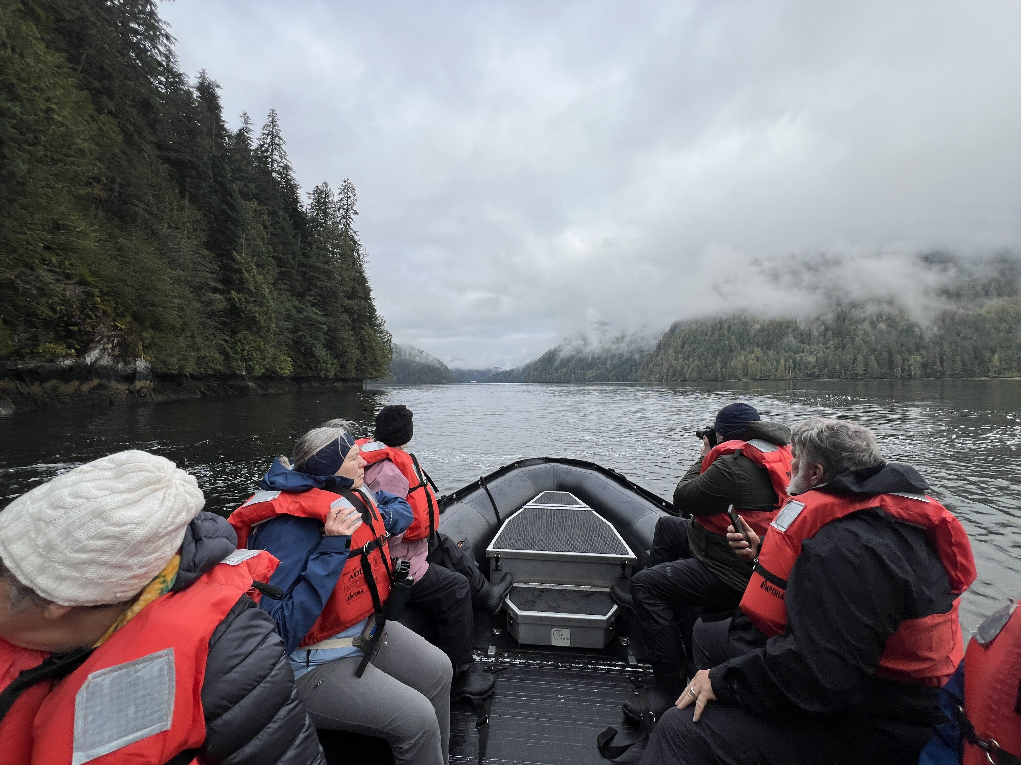 It was a soft Alaska morning into which we had many options for exploration; different walks in the forest, boat tours around the harbor, an exploratory bike tour, and a chance to visit town at our own pace. In a light drizzle, it was an opportunity to test our raingear as we embraced the Scandinavian saying; “there is no bad weather, only bad clothing”. By late afternoon all were aboard and cozily settled in the lounge as we transited the dramatic channel of the Wrangell Narrows, heading south towards Canada but with one more day to explore the wilds of Southeast Alaska.