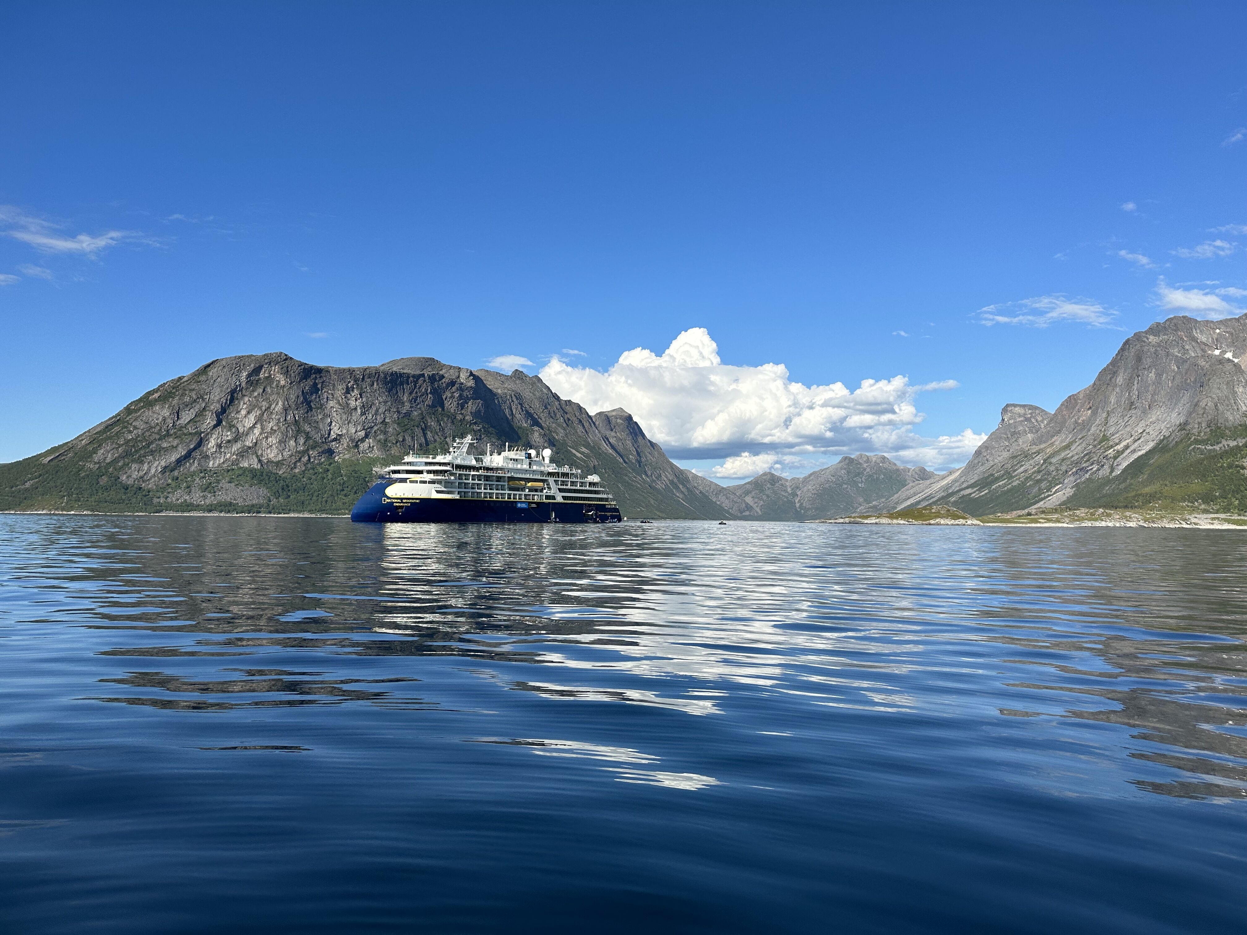 Waking this morning on National Geographic Quest, we were amazed by the sunshine and unusually warm Alaskan summer weather. Petersburg is a quaint fishing town on Mitkof Island in the Inside Passage. We headed into town to explore Petersburg by Zodiac, bike, and foot. The day continued to get warmer, and many enjoyed visiting local shops and restaurants and meeting the many faces of the town. As we set sail to head towards Tracy Arm-Fords Terror Wilderness, we enjoyed a rare treat, cocktail hour on the sundeck. A beautiful day was had by all.