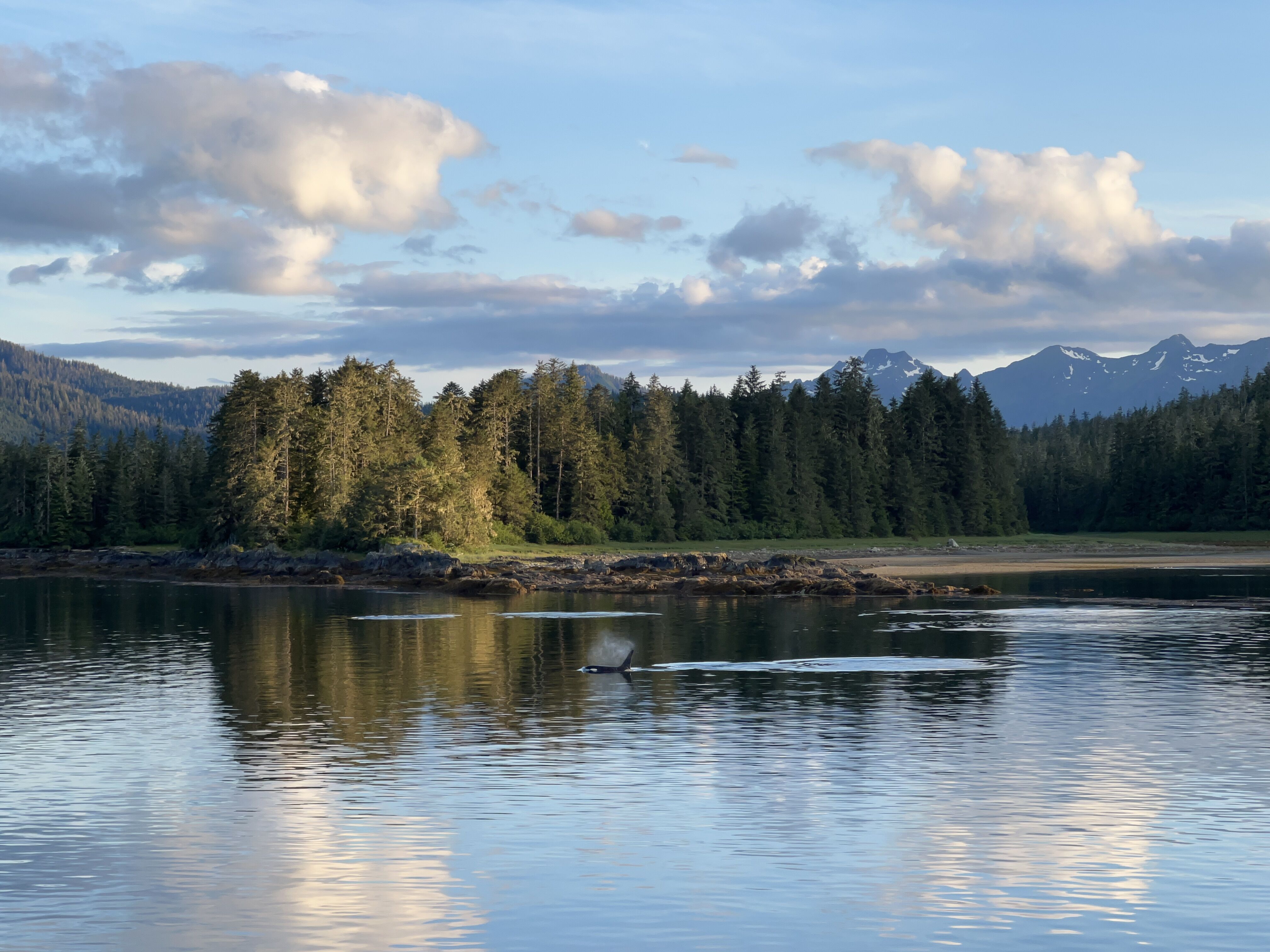 As we made our way again into beautifully sunny, calm conditions, our bridge team slowed and turned the ship back in the direction of Petersburg – killer whales! Cruising along with a large, mellow group of resident killer whales was a wonderful way to round out the day before settling in for an exciting game of Alaska Jeopardy as the sun went down.