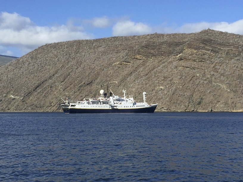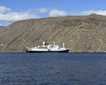 It might seem strange to say that water has many moods but it could be looked at in just that way. Water, the miraculous molecule that makes us what we are. We replenish ourselves with its liquid form and sail upon its masses. Its surface might be as smooth as glass or as crumpled as crushed satin. It can be deep dark navy blue with silver streaks dancing from crest to trough as it was for us this morning. Or it could be gray loaded with glacial flour or maybe even turquoise blue with light scattered from those same fine particles. Earlier we met one of its frozen phases; platters of drifting sea ice where polar bears and walrus resided. Today, another face, another mood left us marveling at its beauty.