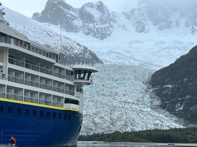 National Geographic Resolution entered the Beagle Channel early Thursday morning, with Pia Glacier as our destination. Pia Glacier is located on the northwest arm of the Beagle Channel and lies within the Darwin Range. It is a tidewater glacier that is fed from the South Patagonia Darwin Icefield, and the terminus of the glacier is Pia Bay. Pia Glacier is one of five major glaciers in the Beagle Channel’s “Glacier Alley.”