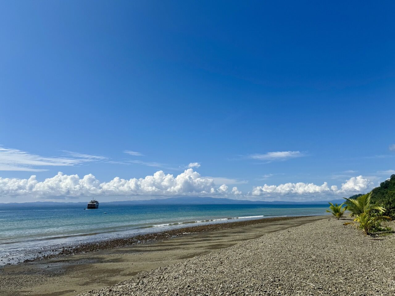 In the afternoon, we repositioned the ship to Golfito, a little gulf with a small village and gorgeous scenery. The hills are covered by the tropical rainforest. In this area, we kayaked through the mangrove and took Zodiac tours. Once again, the wildlife was spectacular, especially the capuchin monkeys that put on a show of jumping right in front of our eyes.