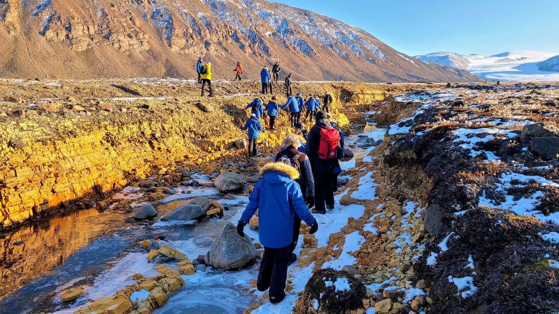Timing being critical, preferably the muddiness doesn’t present itself first thing after breakfast, and this was duly averted by a morning Zodiac cruise past Pim Island in search of icebergs and walruses. As National Geographic Endurance cruised slowly deeper into Alexandra Fiord, the ice and walruses grew even thicker, and when we arrived at a former Royal Canadian Mounted Police post (occupied briefly for a decade in the mid-1900’s) we were excited to get onshore and see what else was waiting to be discovered. A spongy tundra covered in the last breaths of cotton-grass and hidden pools cloaked in hoarfrost greeted us, and for over two hours we wandered through the beautiful silence of an Arctic autumn.