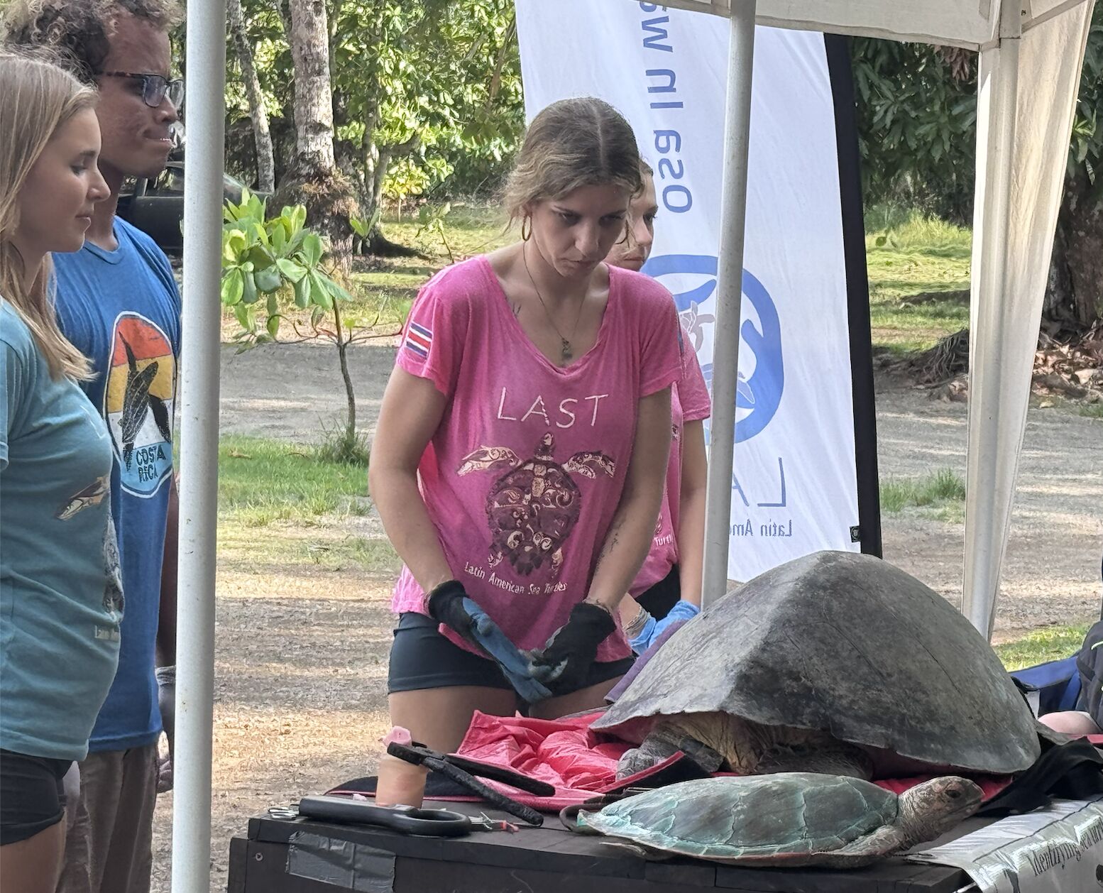To end our afternoon, we learned about green sea turtles from the Sea Turtle Conservation NGO. They showed us a huge green sea turtle that had been caught in the night, which would then be released in the waters of Golfo Dulce, a place unique for its geology but its people too.