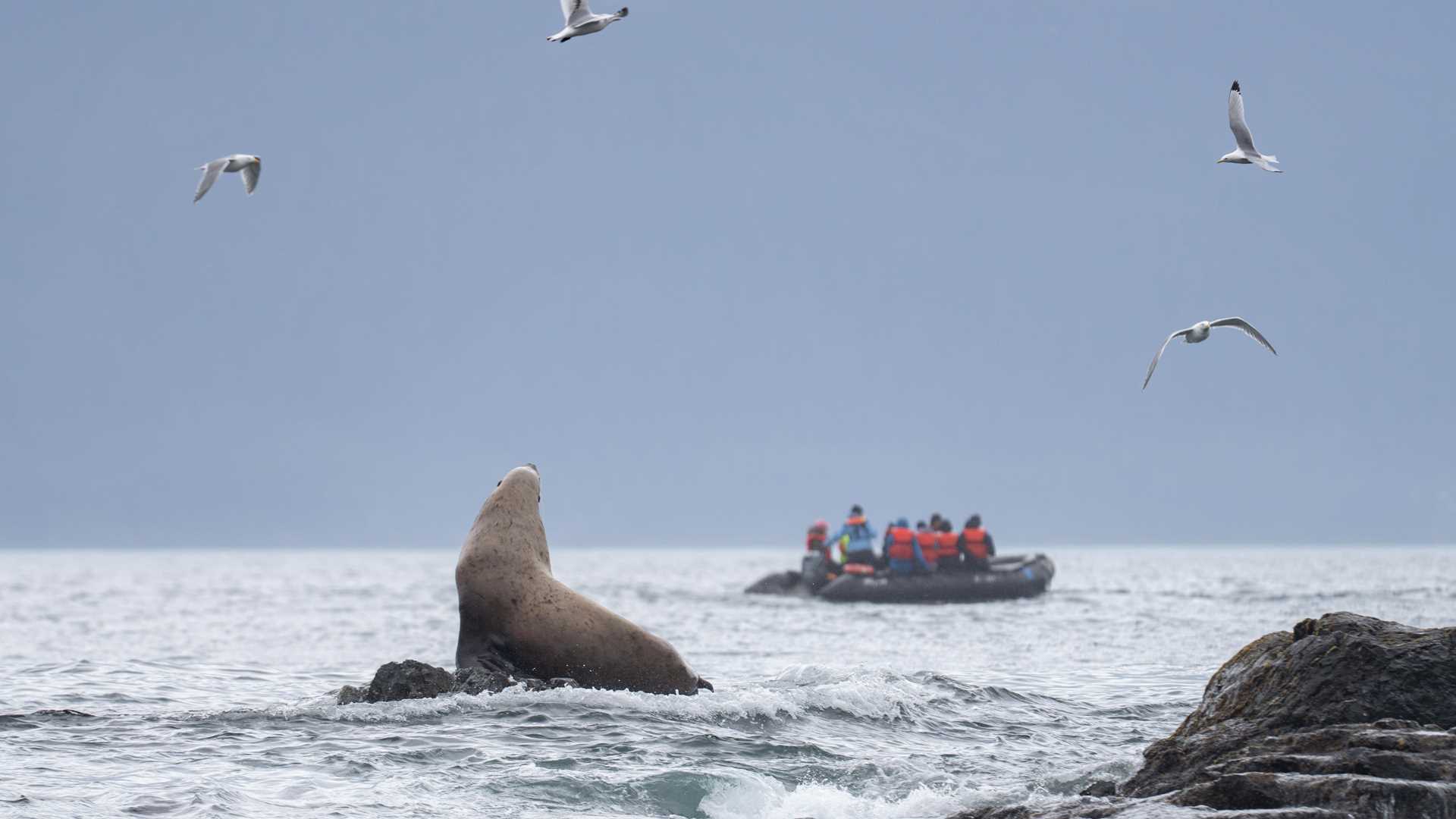 It was a day of following our curiosities. Guests spent the morning kayaking and hiking around Port Althorp. Hikers explored the intertidal, as their guides explained the alien lifestyle of some of the creatures they found. Other guests wandered past the high tide line to relax into some quiet moments in the forest. For the afternoon, everyone put on their waterproofs to explore one of the most exciting areas of Southeast Alaska, the Inian Islands. Famous amongst guides and guests alike for swift currents and plentiful wildlife, the Inian Islands wowed us with their magic once again.