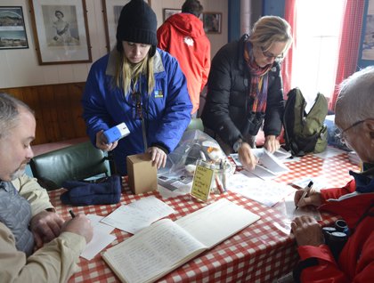 The night was spent quietly at anchor just off Port Lockroy, our first destination of the day. After breakfast we attend a short briefing on the history of Base A. The presentation was conducted by one of the ladies who now work at the old base, which has been restored by the British Antarctic Heritage Trust and today functions as a museum, post office and shop. The base was originally set up in 1944 as “Operation Tabarin” before becoming a scientific base shortly after the end of the Second World War. It was closed in 1962. The visit to this historic site is much enjoyed and quite a lot of purchases are made to support the trust as well as a lot of postcard writing.
