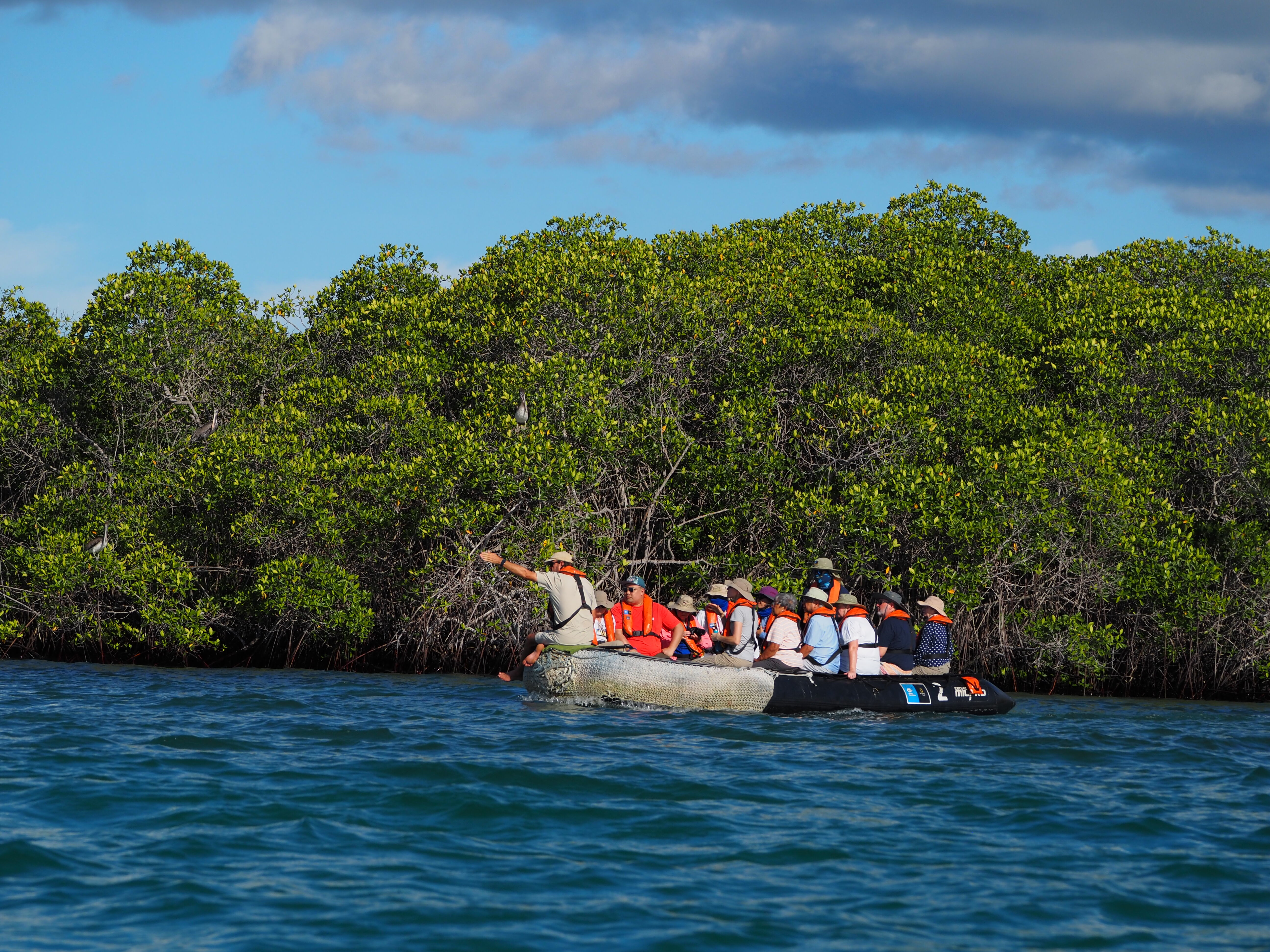 At the end of the inlet, a mighty waterfall roars through the trees, showering and surely delighting, the dense foliage flanking the incoming creek.
