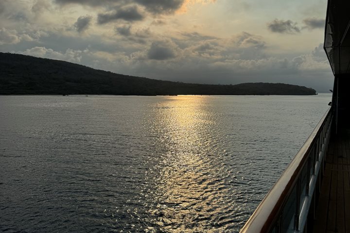 The day began with National Geographic Orion anchored between West Bali National Park, the tiny island of Menjangan, and the looming shadow of Mount Ijen on Java. A short Zodiac ride brought us to Menjangan, our first taste of some of the wild, natural landscapes still found in the most densely populated stretch of the Indonesian Archipelago. We spent the morning hiking through the dry deciduous forests and mangroves found on the island. Flowering flame trees danced with birds, and the grasslands were inhabited by families of Javan rusa (a small deer native to these islands). At the top of the hill, we visited a small temple with a sweeping view of the ocean and surrounding landmasses. While the temple construction was new, Menjangan has been an important pilgrimage site for centuries. Before leaving we were graced by a pair of changeable hawk-eagles circling low overhead.