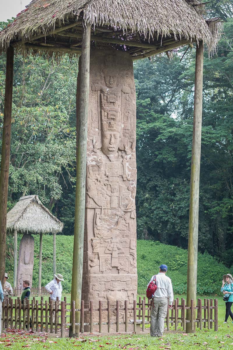Today the crew and guests woke up to a beautiful day alongside the dock at the port of San Tomas de Castilla. Parrots squawked overhead at the dock as our Guatemalan guides eagerly awaited our disembarkation to start what turned out to be a great day. Our first leg of the journey took us to the World Heritage site of Quirigua where everyone learned about the great K’ahk Tiliw Chan Yopaat who became the ruler in 724 AD and became powerful enough to defeat the city of Copan by beheading its ruler. Wow! Of the 17 magnificent monuments in Quirigua, 10 are dedicated to K’ahk Tiliw Chan Yopaat. These sandstone stelae and zoomorphs are only seen in Quirigua. The real star of Quirigua however was undoubtedly the very iridescent turquoise-browed motmot.