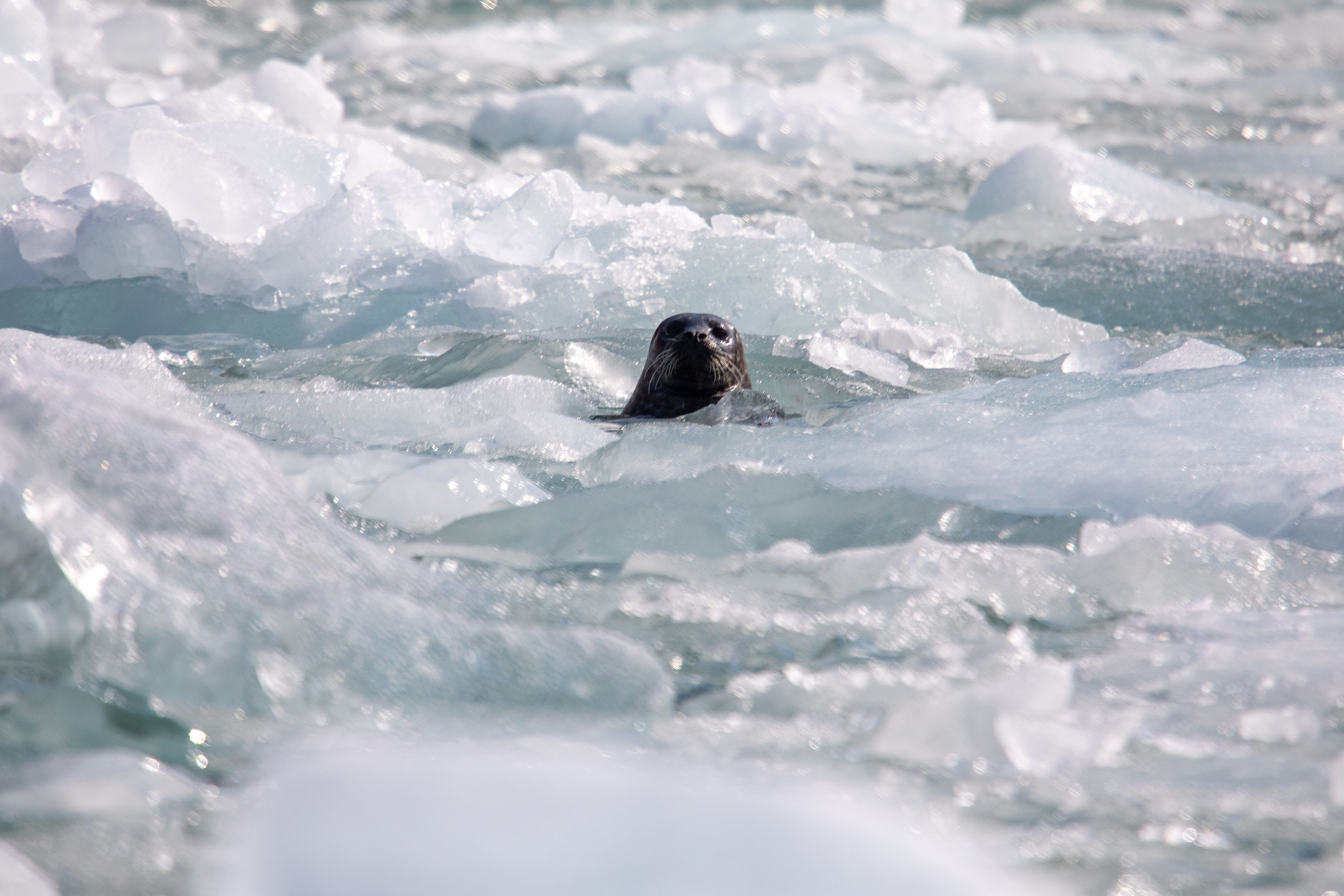 On the way back to the ship for lunch, we passed by the nest of a peregrine falcon. The juvenile was still hopping about on the ledge by the nest while one parent alternated between sitting and flying. Flying falcons are difficult to photograph in choppy seas, so readers of the Daily Expedition Report will have to use their imaginations.