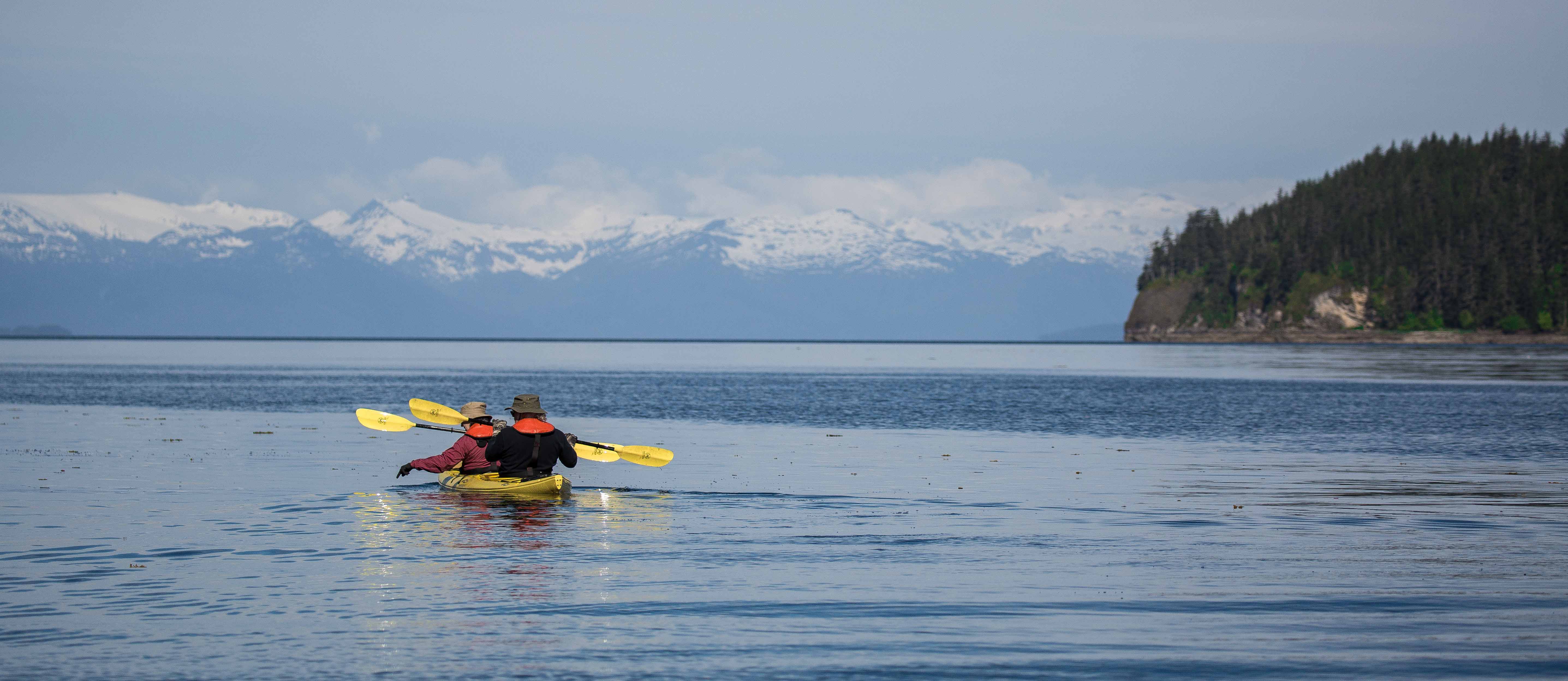 Paddles dip past the surface, slicing with delicate purpose through the glassy calm water that fills Saginaw Bay. Removed from the thrum of generators and engines, the silence seems almost loud, as it permeates the moment. Floating, skimming, gliding along in kayaks of determinedly cheery yellow we are able to tranquilly investigate the coastline. This particular mode of expedition transportation, especially under such ideal conditions, allows for one’s imagination to conceive that perhaps we are toeing the boundaries between planes. Allowing us to look down into clear waters and seeing the thriving life that exists along the rocky bottom, or organisms that gracefully pulse in a weightless world, feeding on the microscopic creatures that flourish in these cold waters. Above, bald eagles and ravens flaunt their own gravity-defying prowess, vocalizing occasionally to punctuate the otherwise pervasive quietude. Hovering on this boundary between air and liquid, wet and dry, cool and warm, presents a fuller picture of the environment we are so privileged to immerse ourselves in, figuratively of course.