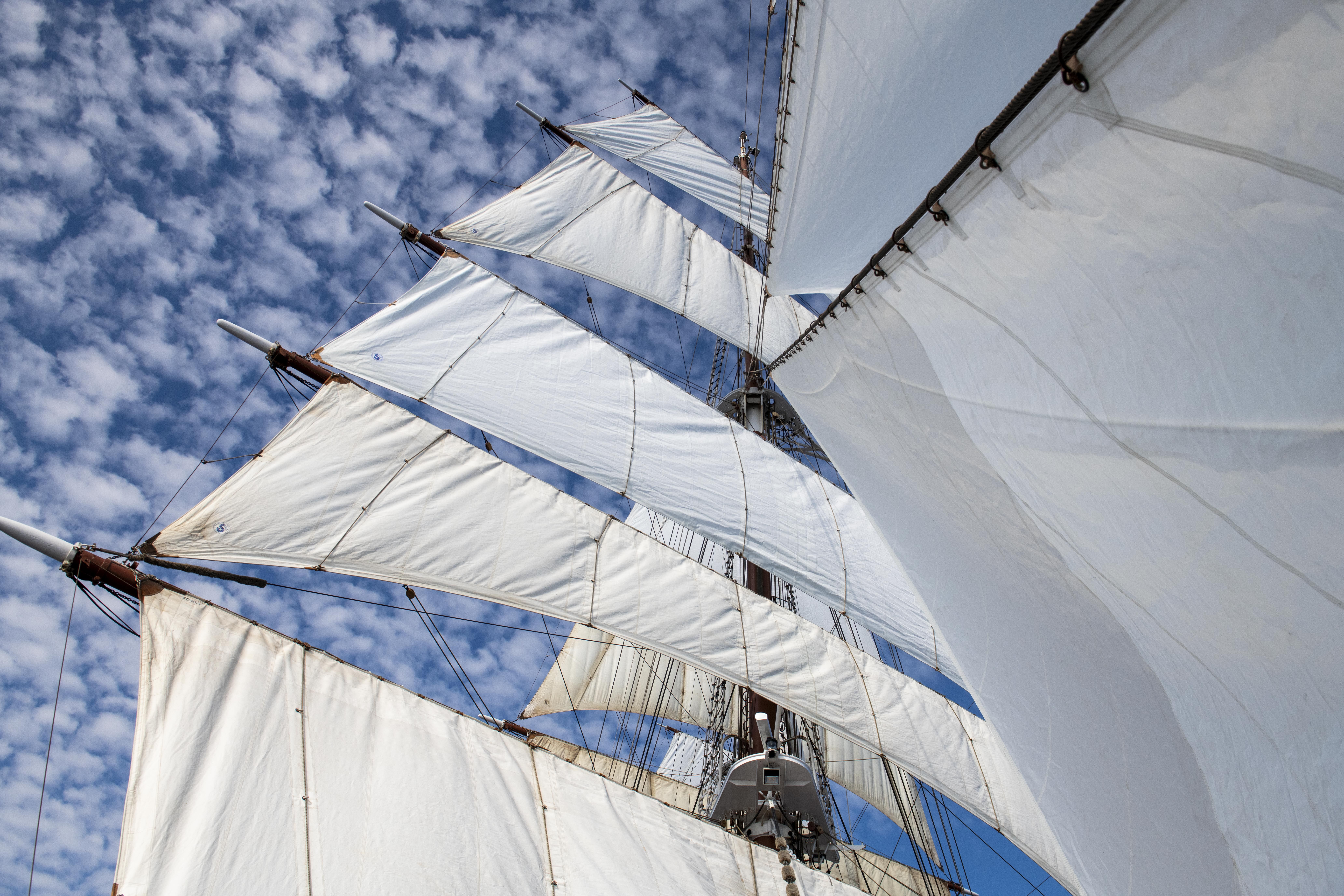 We awoke to a beautiful sunny morning aboard Sea Cloud for a full day at sea with calm waters. The captain kicked off the morning with an update about the weather conditions and our sail plan for the expedition. Afterward, he narrated the process of setting sails. All the sailors hit the rig and climbed up to loosen the gaskets to set the sails. The decks were alive with fast moving sailors and a pile of ropes. We moved to the bow for some photos and then we gathered on deck to watch all 18 of them set the spanker sail. The rest of our leisurely morning was spent enjoying the ship and taking photos of the sails up and admiring the sailors’ rope art.