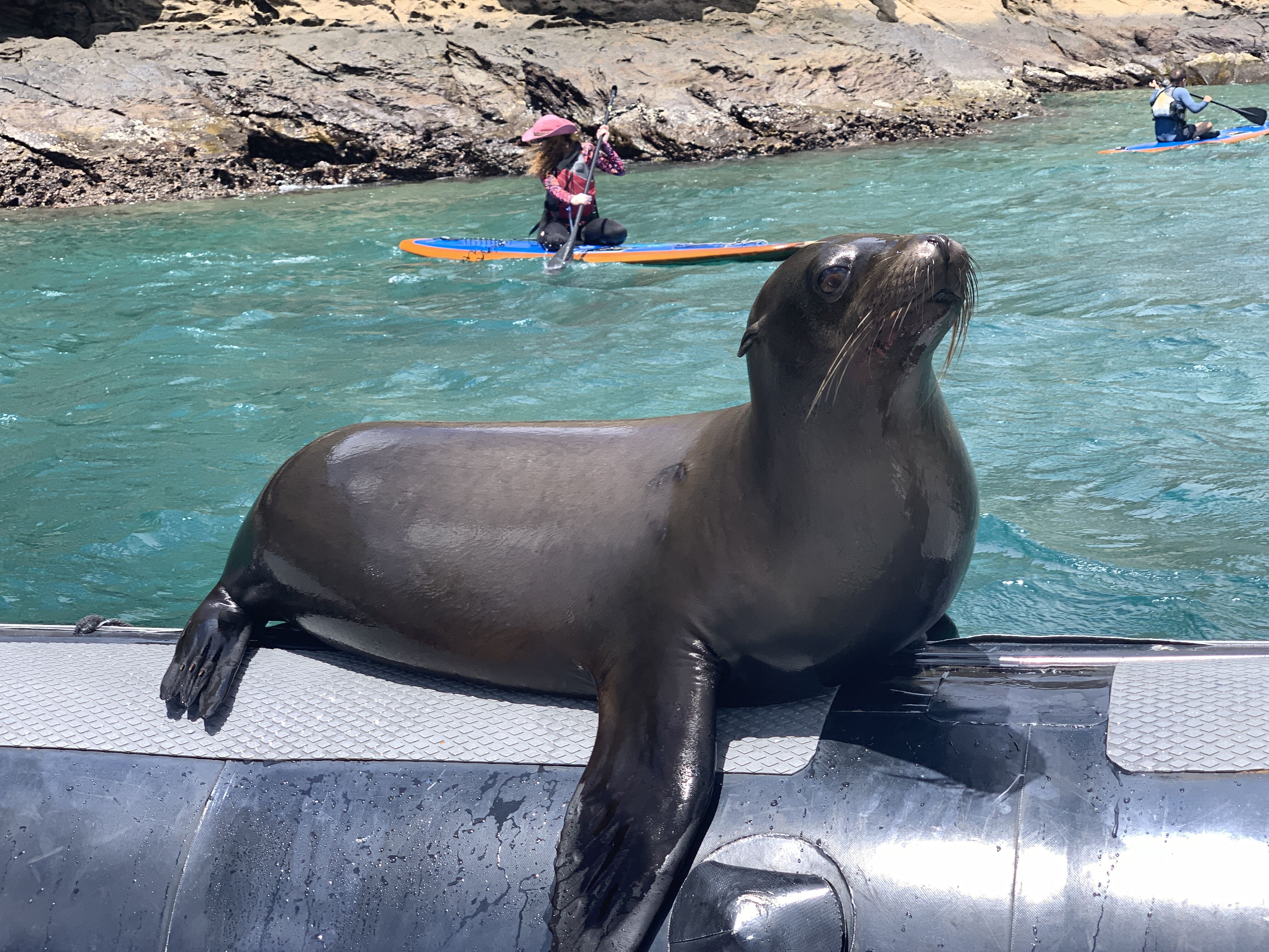 During lunch, National Geographic Sea Bird repositioned to an anchorage in the nearby Inian Islands. We boarded our inflatable boats to cruise through this productive area near the entrance to the Pacific Ocean. The amount of wildlife among these islets is incredible. Humpback whales nearly surrounded the boats as they worked the nearshore for small schooling fish. The deep phthalo green waters support enough sea life to feed hundreds of Steller sea lions, thousands of beautiful seabirds, and even the dozens of sea otters consuming urchins and crabs among the kelp forests.