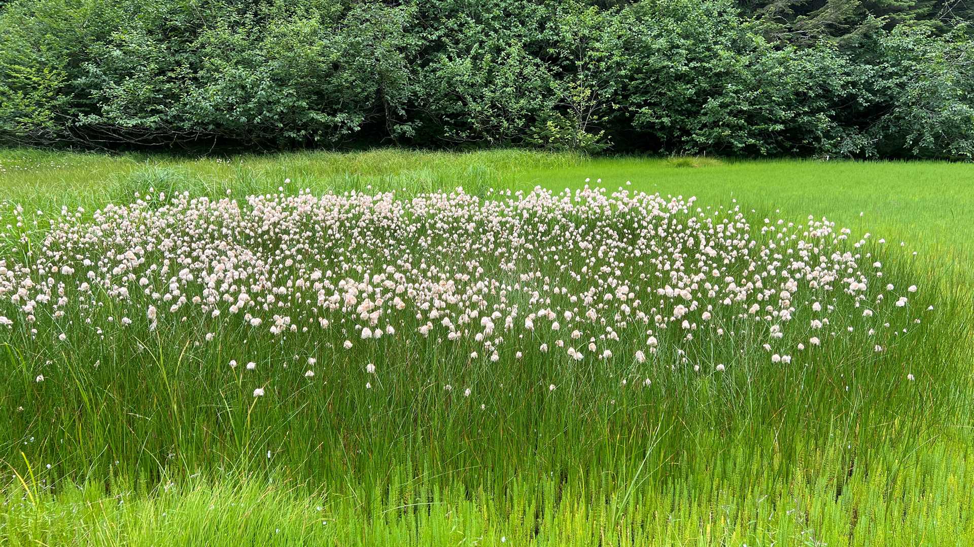 I led a group of intrepid explorers on a bushwhack. We landed at the mouth of the salt chuck. We began our hike with an easy trek across a tidal mudflat and the meadow above it, then around the edge of the salt chuck. At the back of the salt chuck, we met the incoming stream and followed it back to a shallow pond filled with yellow pond lilies and surrounded by a wet meadow. We ascended beyond the meadow, up and down over logs, through blueberry bushes, and around the edges of muskegs, which are Alaskan bogs. Along the way, we discovered five orchid species, mother bear and bear cub tracks, moose tracks, and delightful edible plants. Finally, we found ourselves at the edge of a steep muddy slope that we carefully slid down to reach a beach on the outer edge of the bay. We radioed for a Zodiac while shaking twigs from our hair before heading back to the mother ship for a well-deserved lunch.