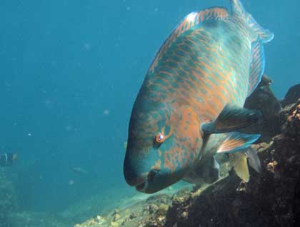 During lunch, we sailed towards“Leon Dormido” or “Kicker Rock.” This magnificent offshore eroded volcanic tuff cone is located on the western coast of San Cristobal Island. It is one the most-well known volcanic trademarks of the Galápagos. Snorkeling in this location was spectacular. Even though it was little bit choppy our enthusiastic guests jumped in the water to encounter many sharks that added a dose of adventurous adrenaline to this outing.