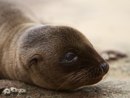 This morning we had our last wet landing, this time on a green, sandy beach made up of an inorganic mix of volcanic ashes and tiny pieces of olivine crystals. After drying our feet and putting our shoes on, we were ready to climb through an eroded trench, created by the erosion of water and wind over millions of years. Punta Pitt is the closest point to mainland Ecuador, about 600 nautical miles away, and one of the oldest islands of the archipelago. The whole area is made of eroded tuff, creating a dramatic landscape. This dry, unforgiving land is a nesting spot for the three species of boobies found in these waters. We observed red-footed boobies nesting on trees and flying by. The vegetation introduced another surprising feature of this site. We saw the always colorful common carpet mat plant, its reddish coloration painting the edges of the surrounding cliff, the Galapagos Nolana with its succulent leaves, and the endemic Chatham’s giant daisy, growing on the flanks close to the top of the craters. Then we headed back to the beach for a refreshing swim after the demanding hike.