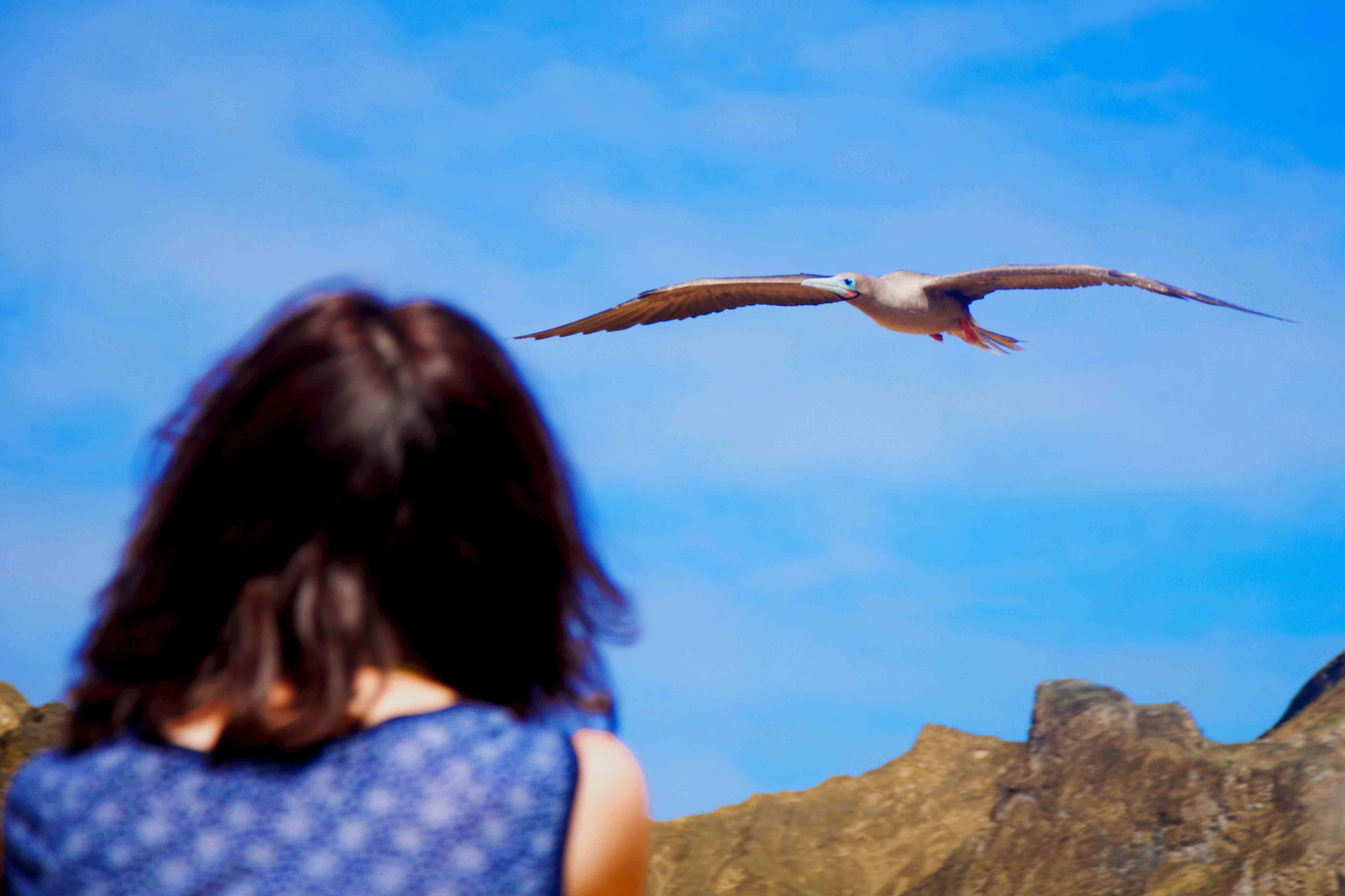 Being the most pelagic of all boobies, the red footed booby can be found in San Cristobal exclusively on this visiting site, which makes this trail the most attracting destination for trekking in San Cristóbal. We also spotted a great number of blue footed boobies nesting along the trail, as well as various Nazca boobies flying around us. What a best way of ending our week than seeing all the three different species of boobies in one trail. After the walk, we ended up in a green sand beach where playful sea lions delighted us with their pirouettes and relaxed behavior. Some of us enjoyed the last snorkel of the week, with some good sightings of tropical fish and sea lions playing underwater.