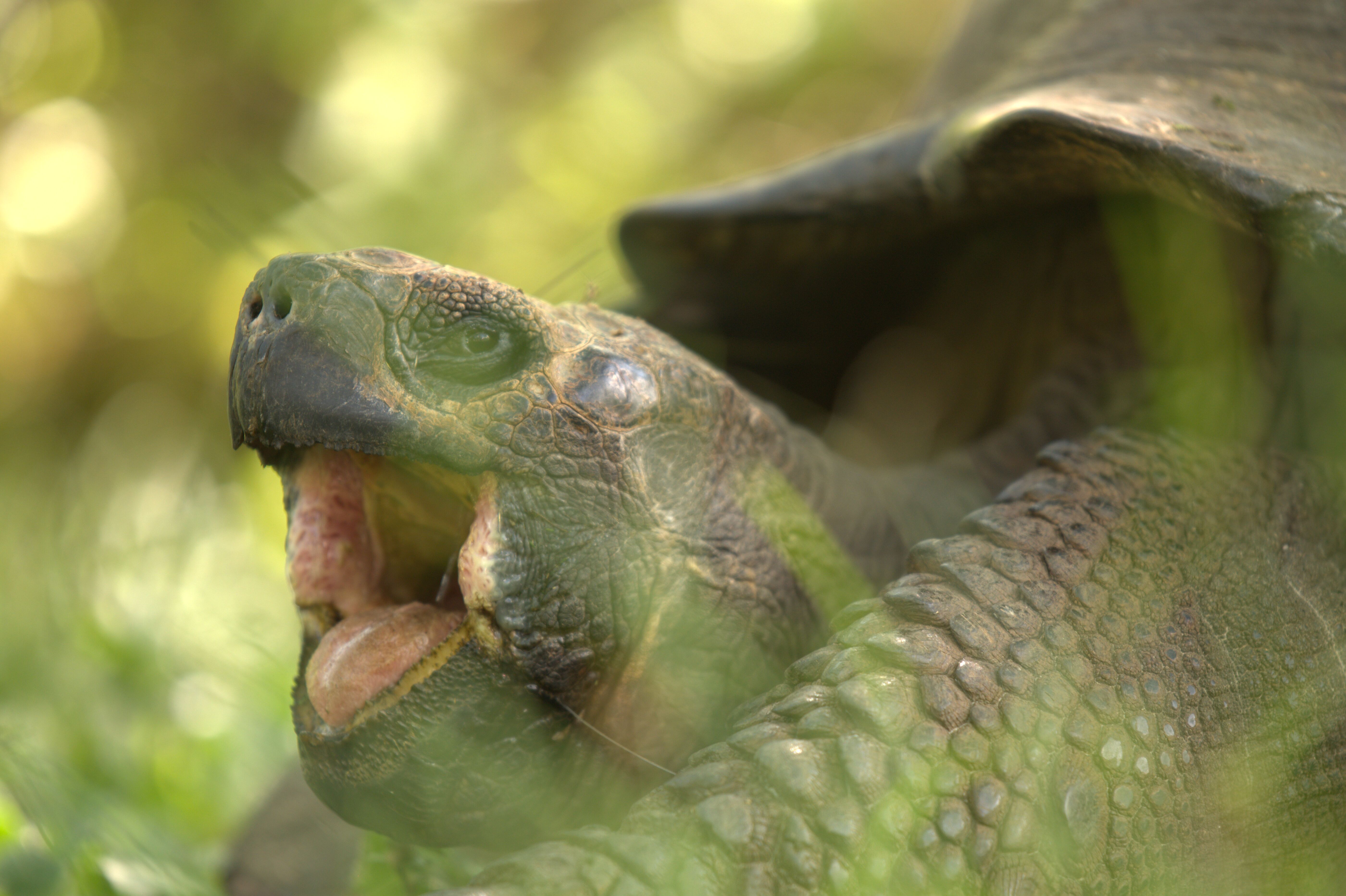 We anchored at Pitt Point, off the coast of San Cristobal Island. What a fantastic landscape, with pointy hills of tuff and birds flying around the ship. After breakfast, we disembarked on the beach. The sun came out, and the beach sparkled like there were diamonds in the sand. We went uphill to the flat parts of Pitt Point, where blue-footed boobies and red-footed boobies nest. We found a couple of blue-footed boobies taking turns as they cared for the fluffiest baby bird we have ever seen. The baby rubbed its dad’s beak to get some food. We stayed a minute, watching the splendor unfold. A few feet from these birds, we found a yellow Cordia tree where five red-footed boobies roosted. We made it to the last part of the trail. From a cliff, we admired the power of the ocean as waves broke on the rocks. On our way back, we found an animal I have not seen before in this place. A Galapagos centipede walked among bushes and rocks along the side of the path. We ended our hike at the beach where guests enjoyed leisure time. At the water, some young sea lions came to say hello. Our guests enjoyed the company of sea turtles and six very playful sea lions.
