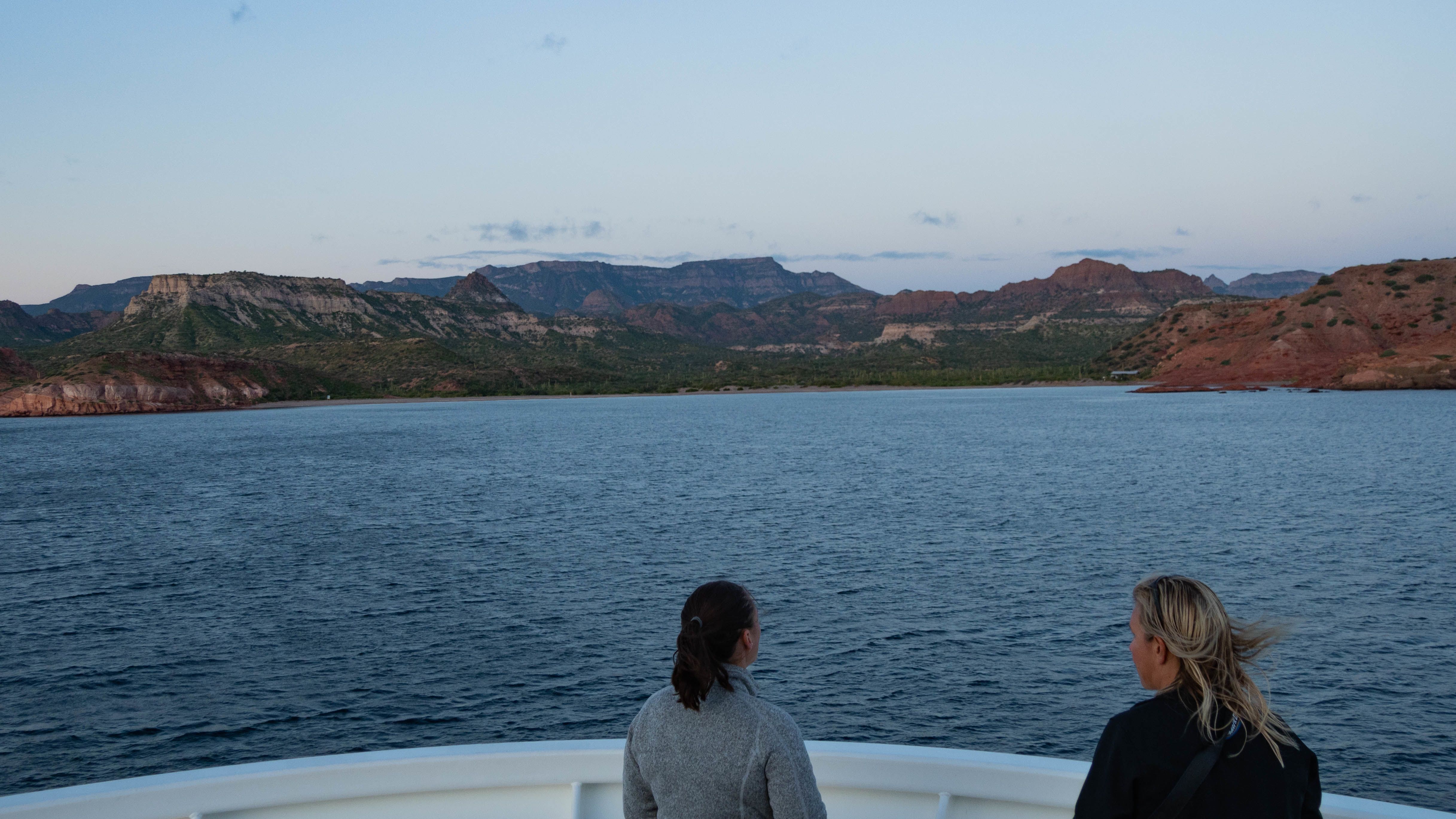 National Geographic Sea Lion ’s first Baja trip of the season is off to a great start! We began in Bahia Almejas, where we were picked up from the ship after breakfast by the local pangueros, who hold the permits required to watch whales in Magdalena Bay. Their small fiberglass boats are a great platform for viewing the stars of this itinerary, the gray whales. We zoomed out toward the mouth of Bahia Almejas in the speedy pangas, getting great sightings of hundreds of birds congregating on the sand bars. And then, a spout! And another, and another! A dozen or more whales dotted the horizon in every direction. The whales were unusually active. While full body breaches are usually a rare occurrence in this species, we saw multiple breaches from multiple animals throughout the morning. All in all, it was a beautiful introduction to these animals that we hope to know better as the trip continues. The pangueros delivered us back to National Geographic Sea Lion and we lifted our anchor to relocate to Puerto Magdalena, a small fishing village. Photo instructor Chelsea gave a presentation about smartphone photography as we completed our repositioning, and then we disembarked once more for the afternoon. Some of us opted to go for hikes, which provided beautiful looks at native and endemic plant species. Others chose a fat tire bike ride, or a leisurely afternoon at the restaurant on the beach. Those who chose the Zodiac tour had a nice surprise when they encountered a large pod of bottlenose dolphins. After a long day of play in the sun, it was time to return to the ship and have a well-deserved dinner. Following a beautiful meal, naturalist Sofia gave a talk in the lounge about gray whales. Tomorrow, we journey north for new adventures!