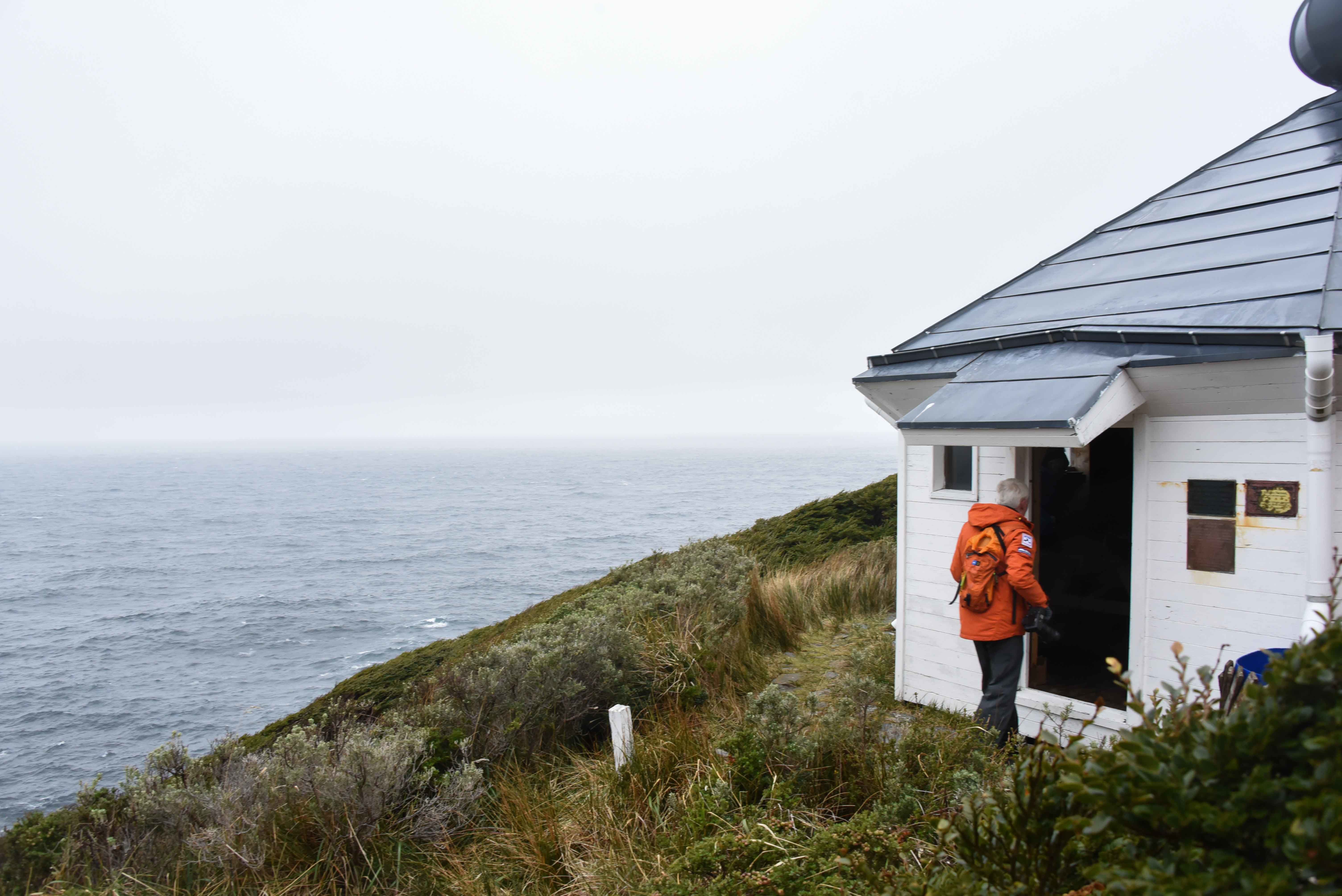 Waking in the protected harbor of San Juan de Salvamento, we began our operations for the day in true Patagonia weather: a bit cloudy with strong winds. We took our Zodiacs to the landing to visit the “Lighthouse at the End of the World.” After a winding hike through low southern beech trees, we crested the top and were treated to a view of the cliffs below and an ever-present fog hanging just above our heads. After lunch, we sailed back to pick up a few researchers we had dropped off in Isla de los Estados a few days prior. The conditions looked favorable, so we were able to make a short Zodiac cruise to see steep cliffs with nesting rockhopper penguins.
