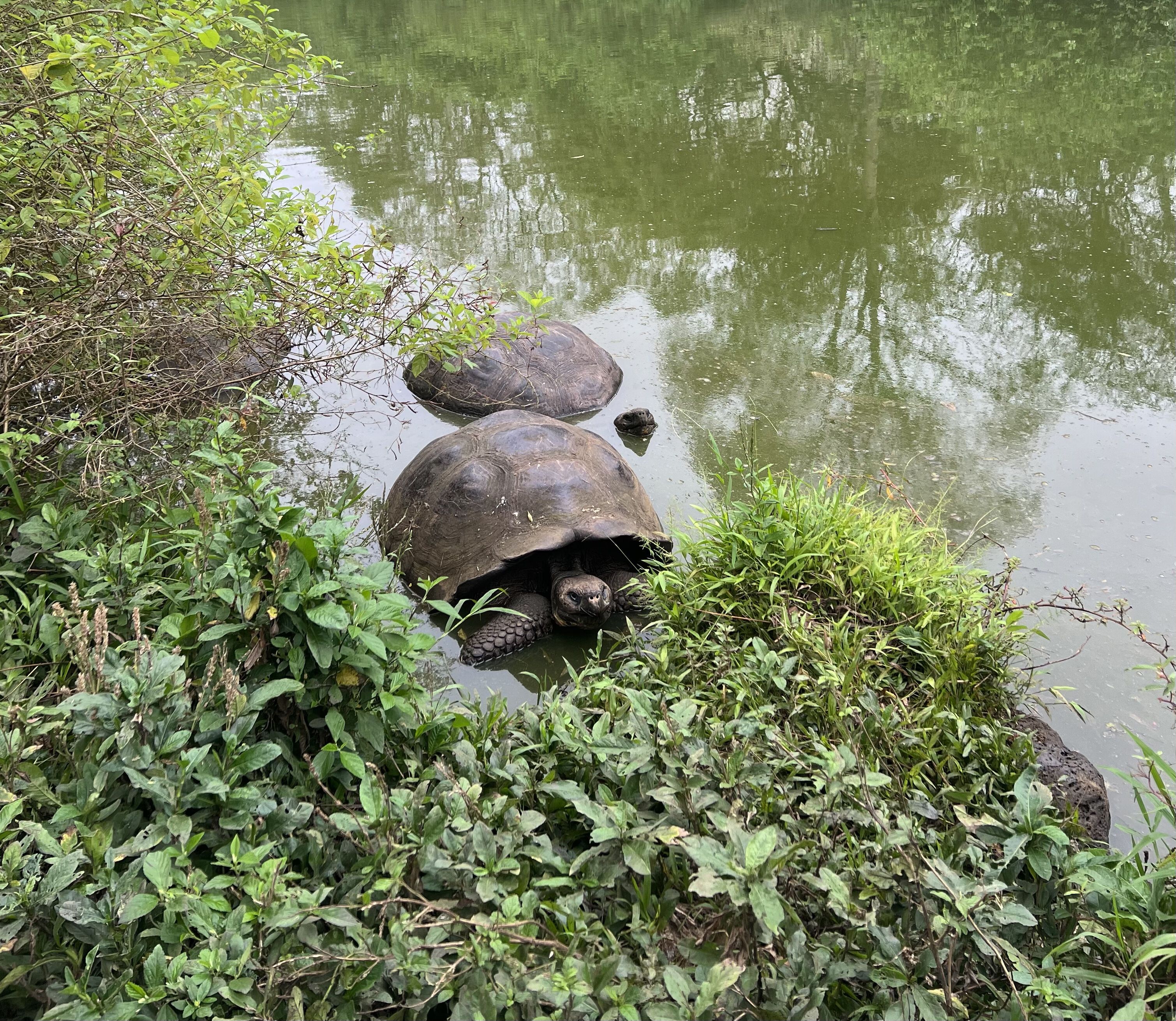 After our visit to the Trapiche Farm, we boarded buses once again and made our way to the Manzanillo Giant Tortoise Ranch. We enjoyed a delicious lunch followed by a visit to see the giant tortoises found all over the ranch. The Santa Cruz giant tortoise has a dome-shaped shell that is conducive to plowing through the dense vegetation found on the wetter islands of the Galapagos. The giant tortoises of the Galapagos evolved from a single, common ancestral species that originated from the South American continent. Galapagos tortoises most likely evolved into giants because they could; islands typically exhibit a disproportionate number of open niches given their isolation from continents. This allows for a great deal of available resources for the creatures that make it to the islands. Given their size, giant tortoises have no natural predators as adults.