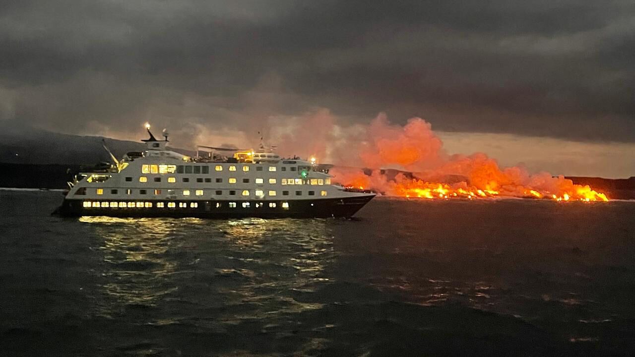 Our day in the Galapagos began at Punta Pitt, where we made a wet landing on volcanic sand, greeted immediately by a baby sea lion and a white morph red-footed booby at the shore. We started our ascent up the hill, spotting numerous red-footed boobies along the way and even a blue-footed booby! The landscape was breathtaking, with vibrant red hues in the vegetation and layers of orange tuff stone creating a stunning backdrop. In the afternoon, we explored Cerro Brujo on the western side of San Cristobal Island. After landing on semi-volcanic sand, we strolled among large colonies of sea lions, leading us to a stretch of pure, powdery white sand. We joined our wellness specialist for a stretching session, then walked along the beautiful beach, marveling at the unique volcanic landscape around us. Before the sun set, we returned to National Geographic Islander II and our captain took us to Kicker Rock, an iconic eroded ash cone and a nesting site for many seabirds. With the rock glowing in the evening light, our guests raised a final toast to celebrate an unforgettable day in this extraordinary place.