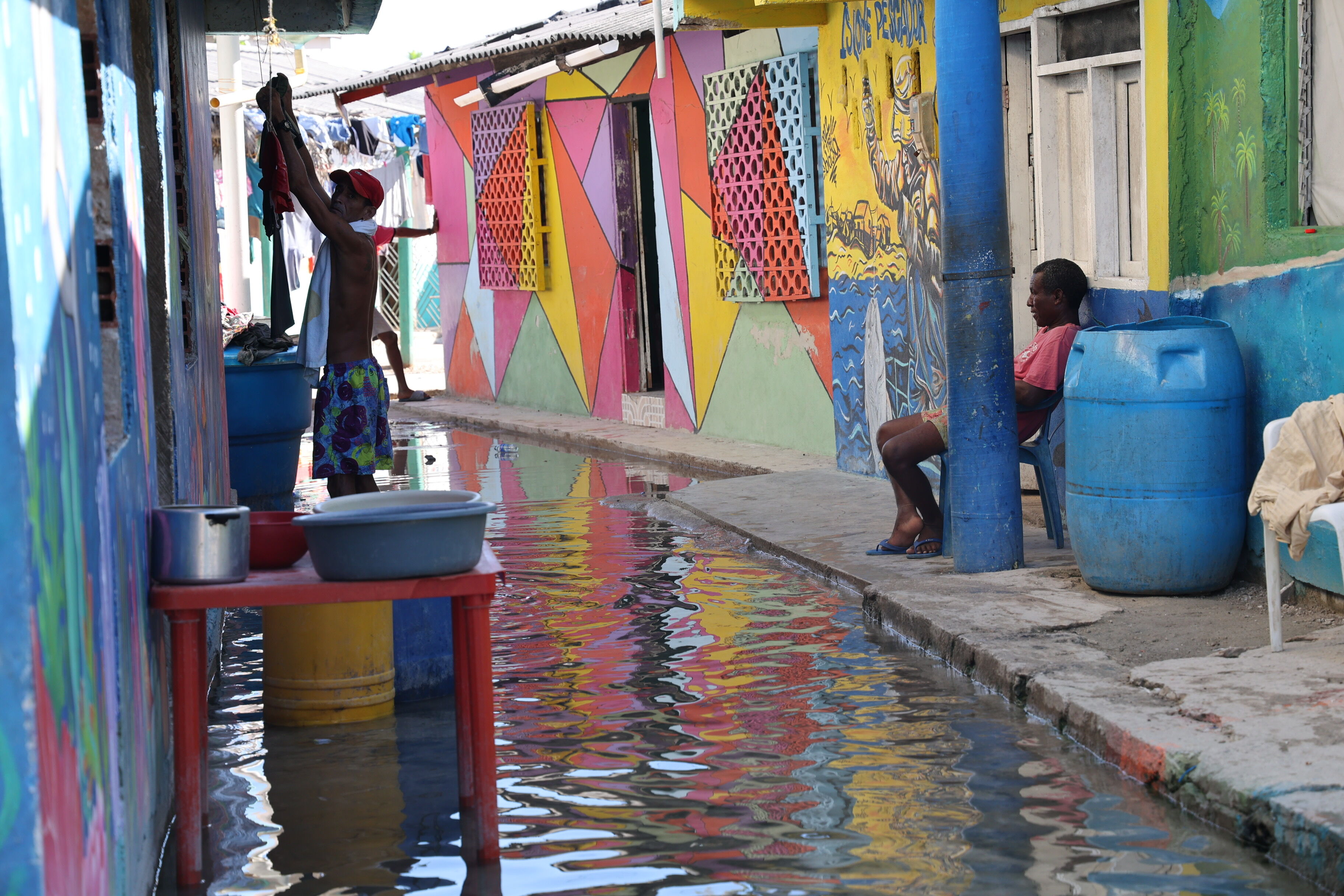 The last full day of our first expedition through Colombia brought us to one of its highlights: Santa Cruz del Islote, a tiny artificial island which became famous as one of the most densely populated on earth. Fishermen started reclaiming land in the 1870s, throwing pieces of coral and rocks over areas exposed during low tides. Today Santa Cruz del Islote measures 200 meters in length, 120 meters in width, and is home to 1247 people – and still growing! We had a chance to walk through the narrow alleys, meet the locals and photograph incredible art works that cover most of the place.