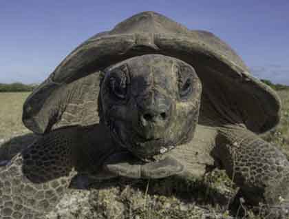 We left the ship after breakfast and went to the giant tortoises breeding center, where we found these reptiles in different corrals. We had the opportunity to see tortoises at various different life stages, from tiny babies, to mid-sized juveniles, and finally to large adults. After taking care of the juveniles for about four years, these tortoises will return to their natural habitat, back to the same island that their parents came from. We also observed lots of land birds, such as Galapagos mockingbirds, Darwin finches and the very colorful yellow warblers. The recent rains have brought a lot of fresh water, and food is abundant for all land birds, therefore mating season is at its highest peak.