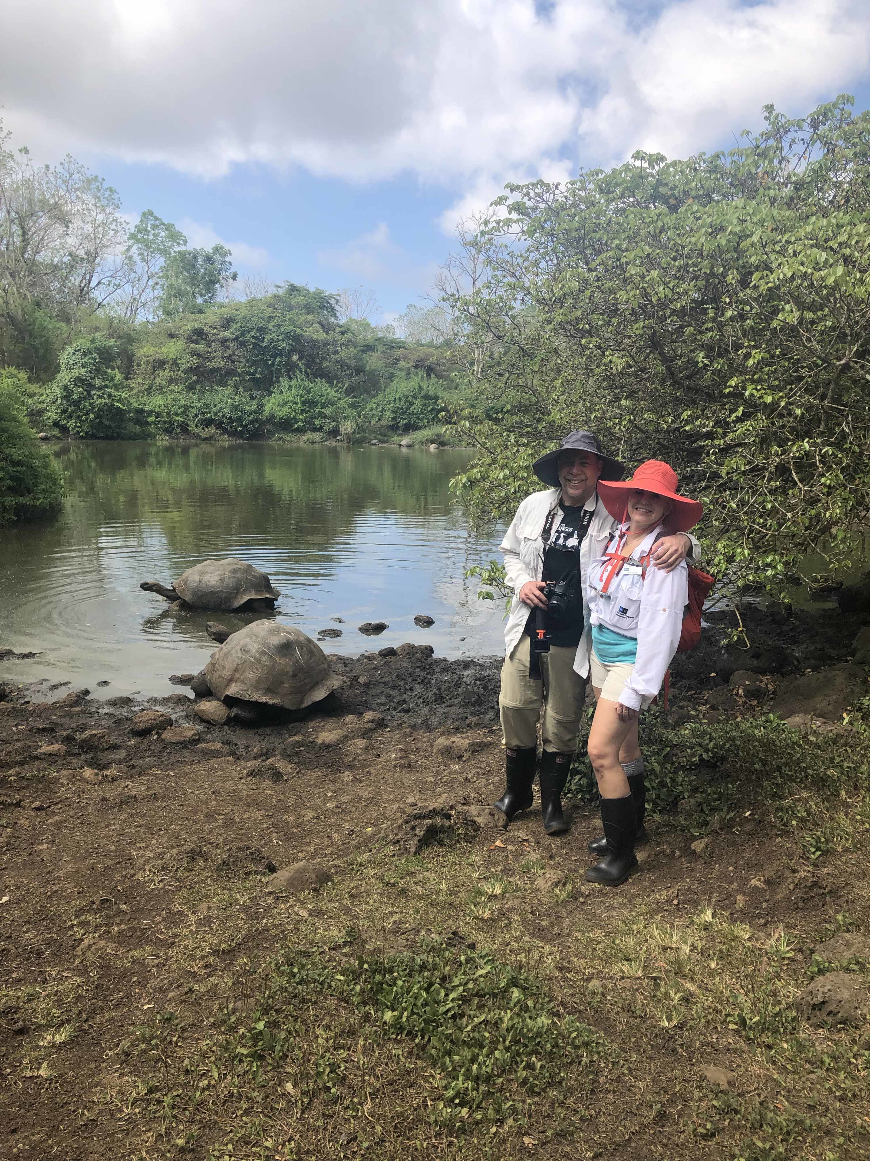 We spent the day exploring Santa Cruz Island. Guests disembarked in the morning to visit a ranch in the highlands of Santa Cruz where we encountered the Galapagos giant tortoise. We were quite lucky on this day, as we observed many giant tortoises of varying ages. The freshwater pond where these giants tend to aggregate was teeming with life; we counted at least 25 tortoises there alone! Giant tortoises are considered bioengineers; by virtue of their natural history, they alter their environment. They graze upon their favorite plants and drop seeds across the landscape—these seeds are perfectly ready for germination, nestled in a little bundle of high nutrient fertilizer. The Santa Cruz giant tortoise exhibits a dome-shaped carapace, an advantageous adaptation for plowing through the dense vegetation of an island with significant precipitation.