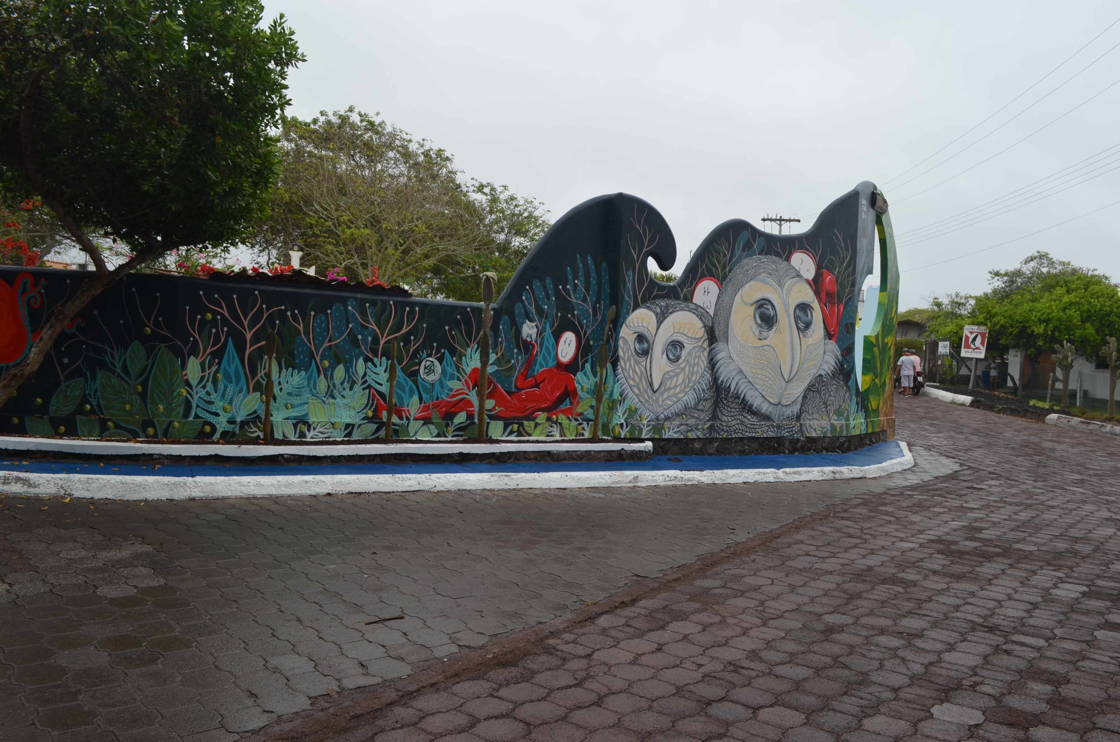 Today we visited Puerto Ayora, the tourist capital of the Galapagos with the largest human population. Right from the start we could feel the hot season and conditions typical of this island. We saw a few places with graffiti, the wall where the bus picked us up and the cemetery were particularly beautiful and represent the deep connection between nature and humans.