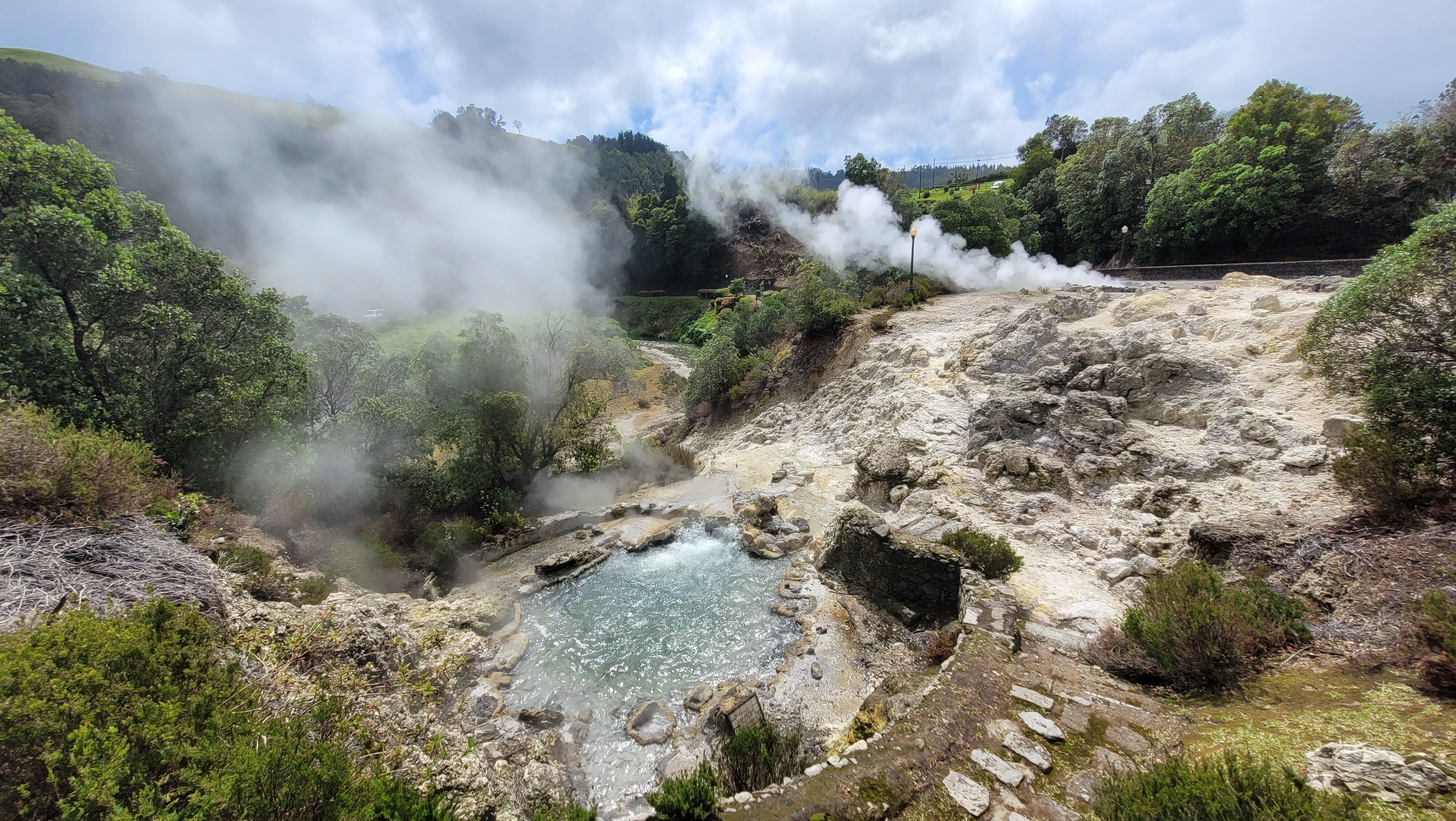 Four options offered everyone aboard National Geographic Endurance an opportunity to choose an expedition suited to their interests for exploration of Sao Miguel, the largest island of the Azores. While some guests chose to explore Ponta del Gada on their own, most of us headed off to explore various places on the island. Three coaches and a van carried all of us from the ship to different destinations on Sao Miguel. One group headed off to the northeast end of the island to explore part of the native laurisilva forest and search for the endangered and endemic priolo, or Azores bullfinch, in the Terras de Priolo Reserve. Others headed directly to Terra Nostra Garden to try swimming in the iron-rich thermal lake. The rest of us traveled east from the current capital city in two coaches, observing the scenic coast on our way to Villa Franca do Campo, the former capital of the island. En route, we passed many farm fields lined by the now familiar lava rock walls that checkerboard all the Azores. A variety of crops thrived in the numerous enclosed plots, including bananas, taro, corn, and melons. We also spotted dairy cattle. A large, flat area that is protected from the winds by a mountain, offering good access to the sea, seemed like an ideal site for the capital when Sao Miguel was settled. A landslide destroyed the town in 1522, though. While the town was entirely rebuilt, Villa Franca never regained its status as the capital of Sao Miguel. Our coach drivers skillfully maneuvered down the town’s narrow, winding cobblestone streets interlacing the white-sided, red-tile roofed homes and buildings characteristic of all the island cities and villages we have visited. Our destination was the picturesque harbor filled with sailboats and a particular local pastry shop, Do Morgado Queijadas de Vila Franca Do Campo. Inside, we watched the preparation of the special pastries through large glass windows. Many of us sampled some of their treats along with small cups of espresso. From there, we headed farther east to the famed Terra Nostra Garden and its thermal springs. We met up with our fellow travelers who had enjoyed swimming in the warm, iron-red waters of the thermal lake at the edge of the garden. While the swimmers washed off the red hues of the mineral rich water, the rest of us wandered through the gardens along well-manicured, cobblestoned trails. Trees and flowers from all over the world, from New Zealand to China, have been planted here in the 200 years since the gardens were established in 1776. A beautiful new addition to the garden features native and endemic Azores flora, a stark contrast to the garden’s history of featuring plants from far flung lands. We admired and photographed some of the plants growing here, up to one thousand species. Heading farther east after the garden visit, we stopped briefly at Furnas to observe the unique geothermal cooking method used for our noon meal. As we watched, two strong men pulled up a huge steel pot that had been lowered into a concrete pit in the ground near a steaming, bubbling thermal hot spring. They judged the meal cooked and carried the pot off in a truck to a nearby restaurant. We soon rejoined our fellow travelers at the restaurant. We enjoyed local wines and a hearty stew of potatoes, taro, carrots, kale, cabbage, and tender beef. This was all topped off by fresh pineapple and pastries from Do Morgado Queijadas. We left fueled for our afternoon activities. The morning’s swimmers headed off to hike along a trail around Lagos de Furnas. The trail meandered past a beautiful church and through another garden of cultivated trees and flowers. The birding group headed back to Sao Miguel for an afternoon exploring Ponta del Gado. The rest of the group made a visit to the Cha Gorreana tea factory. Here we observed the entire process of tea manufacturing with interpretation by our local guides. Surrounded by hills draped with lush green rows of thriving tea shrubs, the tea processing occurs inside a large white building filled with interesting machinery designed to dry, sort, and process the tea leaves prior to packaging the orange pekoe, black, or green tea. A scenic trip along the precipitous north and west coast of Sao Miguel took us back to the ship where we ended our day with the Captain’s Farewell Cocktails and a delicious dinner topped off with a decadent chocolate dessert. The night was not yet over, as the Alfredo Gago da Camara performers were aboard to entertain us in the Ice Lounge after dinner. This professional local Fado group features a singer and three musicians who played Portuguese guitar, classical guitar, and bass. It was a fitting end to a full day of exploration.