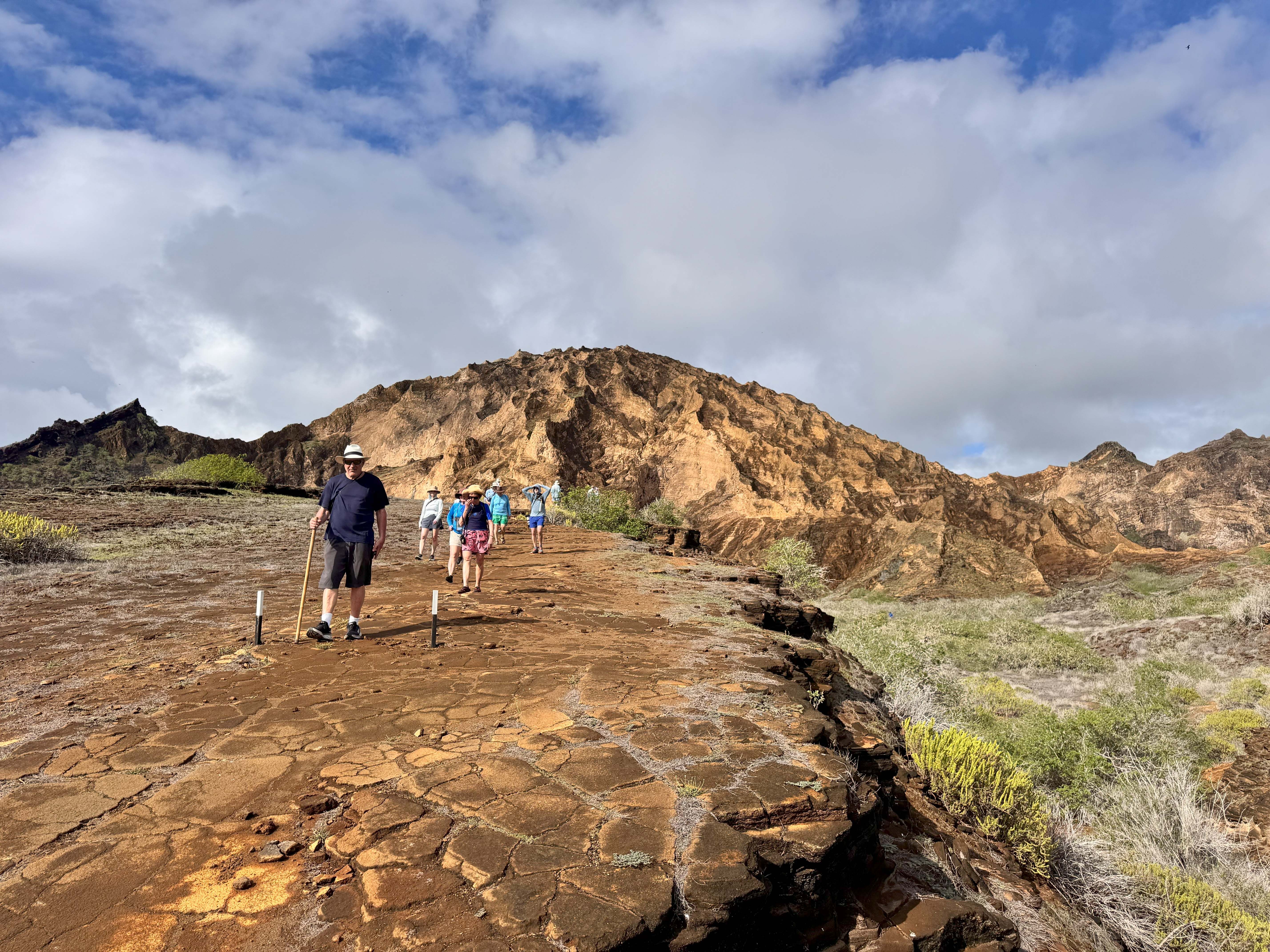 This morning we visited Puerto Egas, a beautiful place to explore the intertidal zone of Galapagos. We landed on a black beach and walked along the shoreline; we found many species of animals, including migratory birds like plovers and sandpipers, as well as a colony of Galapagos fur sea lions. Further inland we saw a few land iguanas and many land birds, and afterward we cooled off in the ocean with swimming and snorkeling.