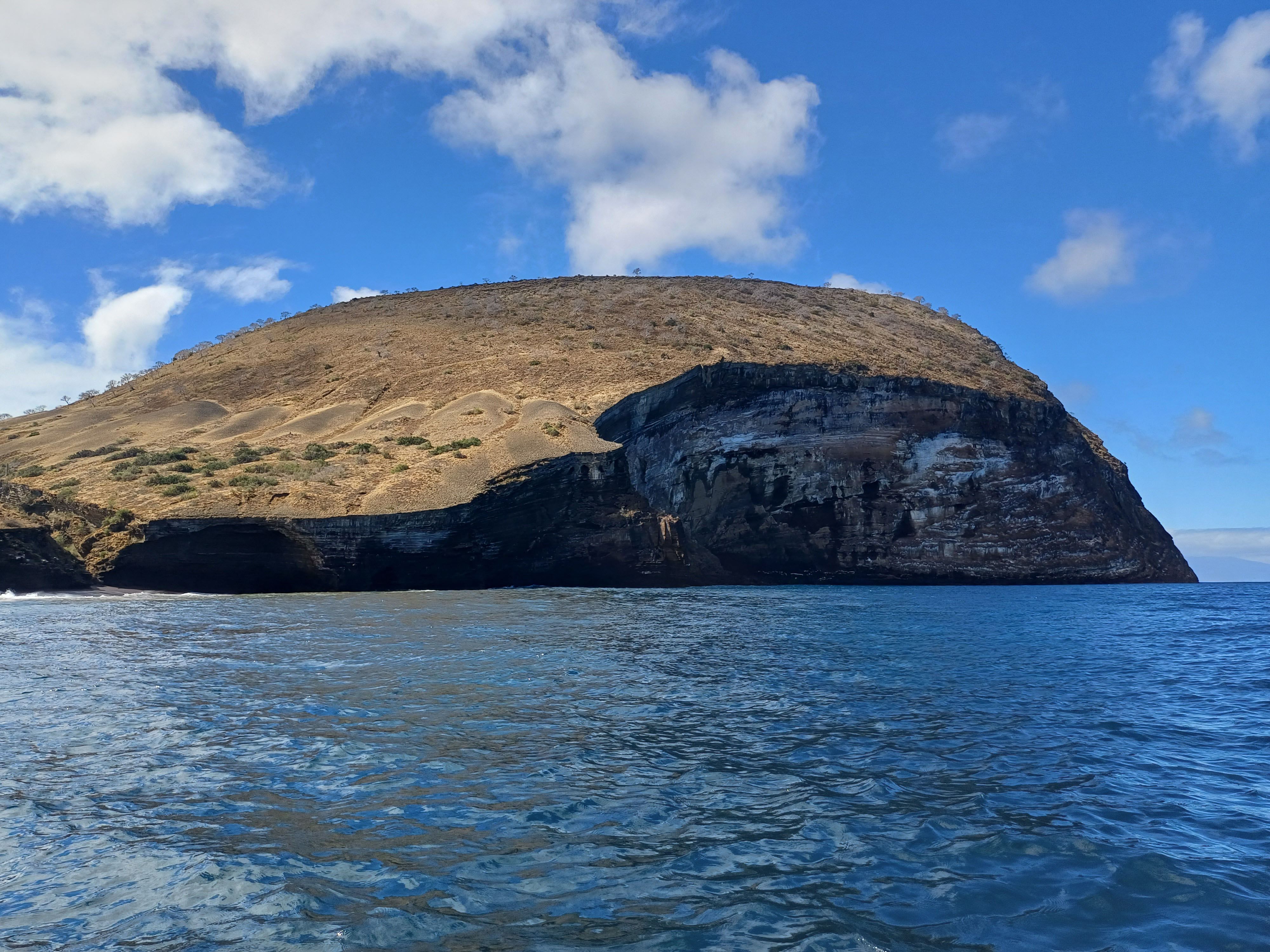 Today we visited Santiago Island. The morning was spent at the historical site, Buccaneer’s Cove. The incredible landscape and its rich and clear waters brought us back to the time when whalers were common in the Archipelago. It was amazing to take the Zodiacs and explore the coast. Simultaneously, eager kayakers were taking advantage of the current along the coast. Snorkeling was fantastic today, with large schools of colorful fish, sharks, Galapagos sea lions, and even a manta ray. In the afternoon, we hiked at Puerto Egas, the last opportunity to encounter the ecologically naïve animals of the Galapagos. What a fantastic week we enjoyed in paradise!