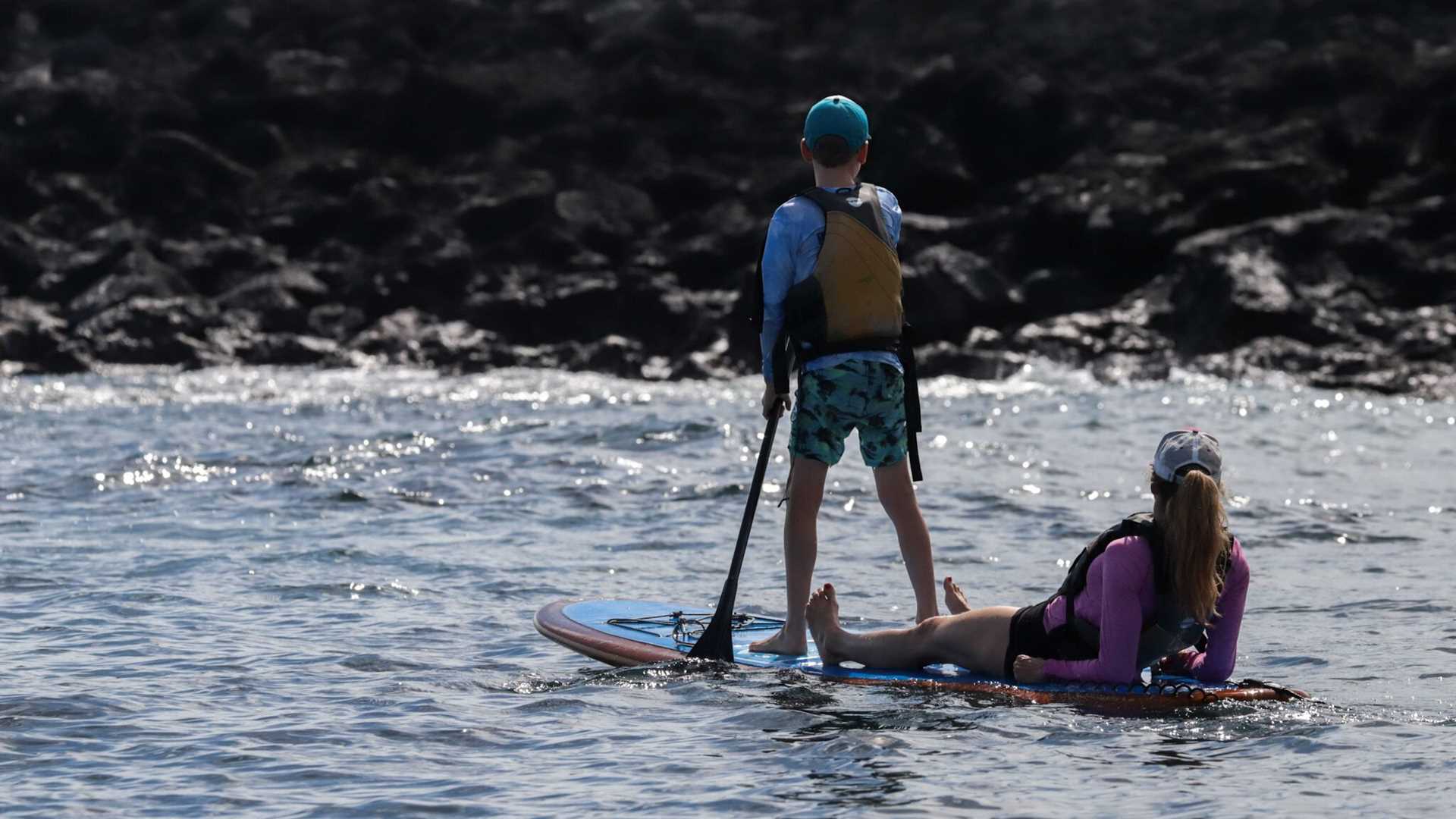 After breakfast, we anchored in Buccaneer Cove, an eroded shoreline located on the northwestern flank of Santiago Island. We explored the scenic visitor site that was frequented by pirates in the 19th century and by Charles Darwin when he arrived on the HMS Beagle in 1835. Some guests decided to explore the natural caves and eroded tuff cones with kayaks and paddleboards, where they spotted brown pelicans and Nazca boobies. At the same time, other guests preferred viewing the undersea wildlife from aboard the glass-bottom boat or while deepwater snorkeling.