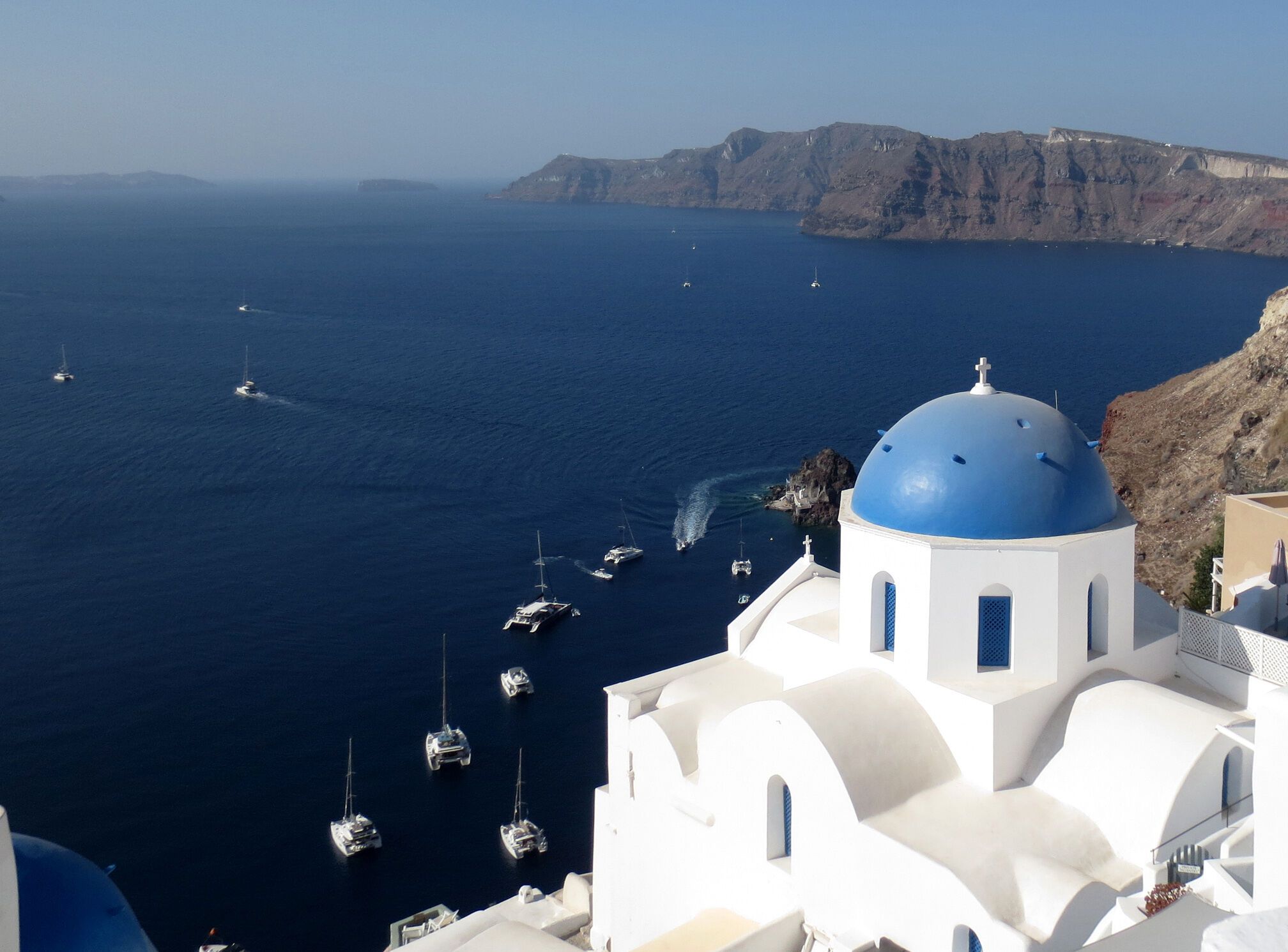 Our full day on the fascinating island of Santorini (Thera) started with a stroll through the beautiful town of Oia, once a quiet village of blue domes and whitewashed houses, but now growing in size and popularity. After our visit, we headed for the archaeological museum in Fira, where numerous well-preserved frescoes from the Middle Bronze Age are on display. These spectacular paintings give us a tantalizing glimpse at life in the Aegean around 1630 BC, including one of our best depictions of ships and seafaring in this era.