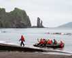 Some days are just too hard to put into words. It’s tough to imagine how such an action-packed week eploring Alaska’s coastal wilderness could possibly be wrapped up. After cruising north overnight from Petersburg, National Geographic Quest awoke to a wonderfully misty morning as we made our way up into the fjords of Tracy Arm-Fords Terror Wilderness Area. Passing by an increasing abundance of broken glacial ice, our eager anticipation grew with every corner we turned through the towering walls. Bundling up after breakfast, we headed out to explore Sawyer Glacier by Zodiac. Impressive waterfalls carved their way down to the turquoise waters as pigeon guillemots and Arctic terns flew by. Colorful flowers dotted the sides of the steep cliffs among the varying levels of vegetation growth, indicating the story of glacial movement and succession over many years past. Rounding the corners of the fjord, jaws dropped as we laid eyes on the deep blues of the exposed tidewater glacier face, towering 200 feet above the surface. As we enjoyed our hot cocoa delivered by the Lindblad-famous cocoa Vikings (deck and hotel crew), Sawyer treated us to various displays of impressive calving activity and the cracking sounds of “white thunder”.
