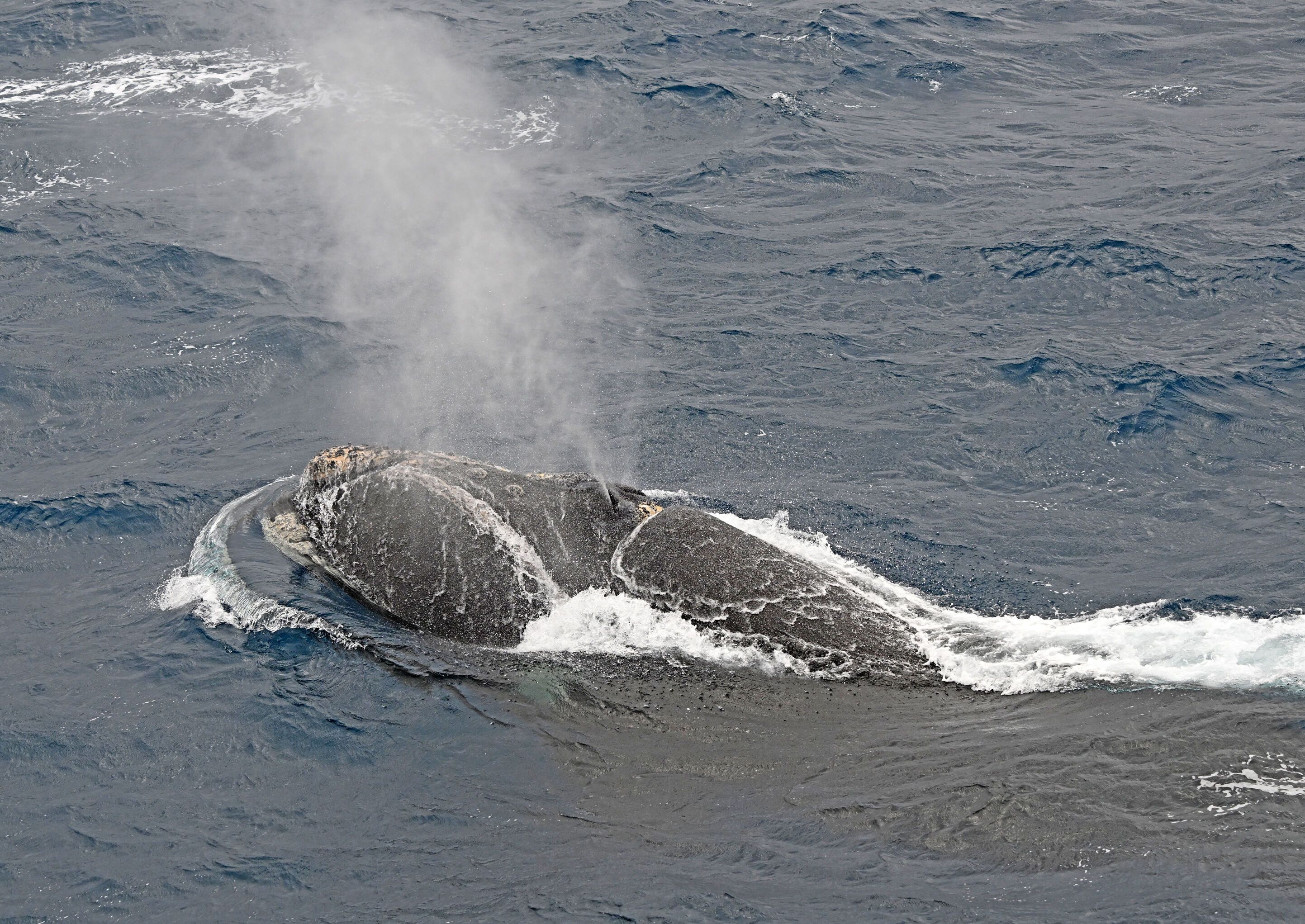After breakfast, undersea specialist Rachel Martin gave an engaging presentation on “The Love of Krill.” Krill is a keystone in the entire ecosystem of the Southern Ocean. It is the main food source for a number of penguins, seals, and whales. Rachel’s presentation was interrupted by a message from expedition leader Sheri, “Southern right whales have been spotted ahead of the ship. We don’t want you to miss this rare encounter, so please bundle up and come out on deck!” The encounter turned out to be three southern right whales, seemingly two adults and most likely a calf. The species got its name from the fact that this whale was “the right whale to catch.” As slow swimmers that stay afloat after being killed, these whales were hunted close to extinction. They are now slowly recovering. The Southern Ocean is estimated to hold about 11,000 southern right whales, probably less than 10 percent of the pre-whaling population. The three animals we saw today were quite playful and seemed totally unbothered by the presence of our ship. Guests were in total awe during the incredible show that lasted over a half hour. Rachel then resumed her talk on krill. Afterwards, naturalist Carl Erik Kilander invited us to a second lecture, “The Greatest Polar Explorer of All Time,” in which he shared the impressive history of Norwegian explorer Roald Amundsen.
