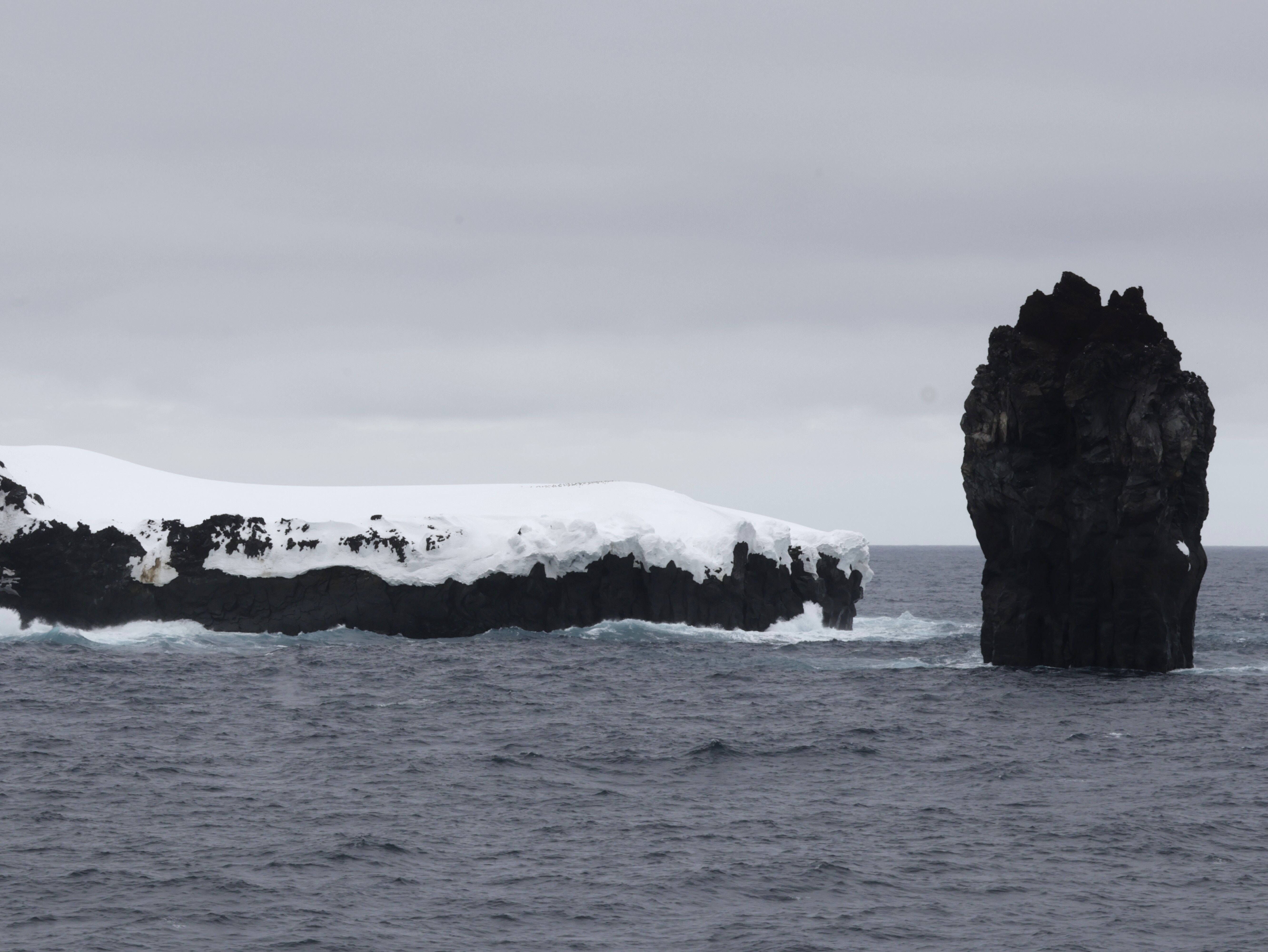 We should have known. Antarctica continued to deliver during teatime, as Swedish pancakes threatened to distract us from the surroundings, an island emerged on the horizon. Scott Island and its trustworthy companion, Haggitt’s Pillar, stood in front of us like rocky sentinels of the Southern Ocean. Covered with an icecap, Scott Island was first named by Captain William Colbeck on Christmas Day of 1902. Antarctic petrels, prions, southern fulmars, Campbell black-browed and light-mantled albatrosses foraged from the very productive seas above the seamount under us. Humpback whales made their appearance to delight us and challenge our photographic skills once again.