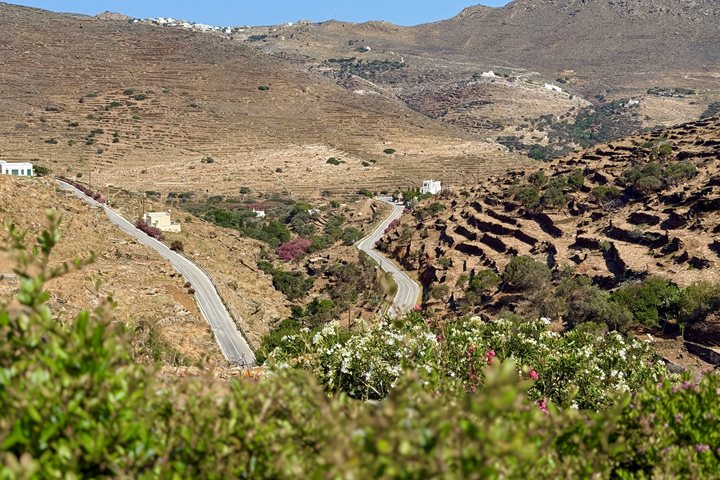 Most of us chose to drive inland the village of Kastro, the Venetian-era castle town perched on an isolated promontory on the east side of the island. We passed by intricately constructed dovecotes that still house pigeons raised for meat as in the Venetian times. Windmills graced the ridges and bright blue boxes housed the honey bees that produce the renowned thyme honey of the island.