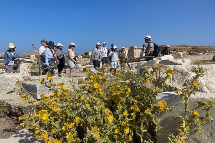 But the highlight of the kastro is the architecture itself, with a jumble of cubic houses stacked on and around each other, with ancient Roman marble picked up from debris piles a thousand years later to be used by the Venetians to construct their walls and homes. We ducked through tunnels and archways, walked narrow alleys and passageways, and finally emerged on the other side of Kastro to one of the most stunning views of a week of stunning views. The Aegean stretched endlessly ahead of us and below us, with Syros, Paros, Antiparos, Naxos, Ios and Sikiros spread before us. And then below us, like a delicate jewel at the shoreline, the tiny postcard-perfect Church of the Seven Martyrs. It was enough to make one laugh with delight. Some of us scrambled for photographs from every angle, while others descended the steep trail to the church below, but we all ended up in one of the two village kafenias to relax and enjoy our final morning in the Cyclades.